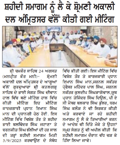 ਸ਼ਹੀਦੀ ਸਮਾਗਮ ਨੂੰ ਲੈਕੇ ਸ਼੍ਰੋਮਣੀ ਅਕਾਲੀ ਦਲ (ਅੰਮ੍ਰਿਤਸਰ) ਵੱਲੋ ਕੀਤੀ ਗਈ ਮੀਟਿੰਗ
