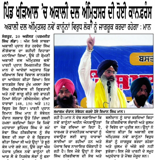 ਪਿੰਡ ਖੜਿਆਲ ‘ਚ ਸ਼੍ਰੋਮਣੀ ਅਕਾਲੀ ਦਲ (ਅੰਮ੍ਰਿਤਸਰ) ਦੀ ਹੋਈ ਕਾਨਫਰੰਸ