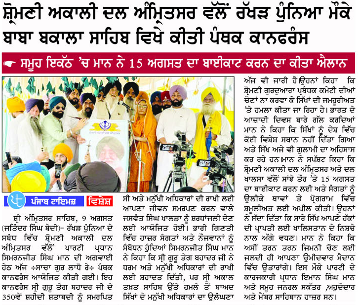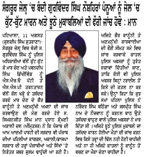 ਕਸ਼ਮੀਰੀ ਆਗੂ ਯਾਸੀਨ ਮਲਿਕ ਆਪਣੇ ਲੋਕ ਹੱਕਾਂ ਲਈ ਜਮਹੂਰੀਅਤ ਢੰਗ ਨਾਲ ਸੰਘਰਸ਼ ਕਰਨ ਵਾਲੇ ਇਨਸਾਨ ਹਨ, ਉਨ੍ਹਾਂ ਨੂੰ ਮੌਤ ਦੀ ਸਜ਼ਾ ਕਤਈ ਨਹੀ ਹੋਣੀ ਚਾਹੀਦੀ : ਮਾਨ ਫ਼ਤਹਿਗੜ੍ਹ ਸਾਹਿਬ, 12…
