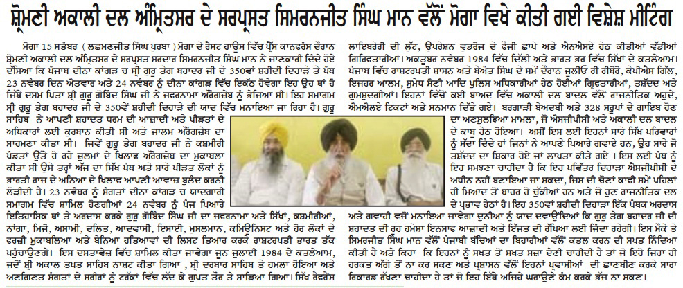 24 ਨਵੰਬਰ ਨੂੰ ਦੀਨਾ ਕਾਂਗੜ ਦੇ ਇਤਿਹਾਸਿਕ ਸਥਾਂਨ ਵਿਖੇ ਸ੍ਰੀ ਗੁਰੂ ਤੇਗ ਬਹਾਦਰ ਸਾਹਿਬ ਜੀ ਦੀ 350ਵੀਂ ਸ਼ਹੀਦੀ ਦਿਹਾੜਾ ਧੂਮਧਾਮ ਤੇ ਸਤਿਕਾਰ ਨਾਲ ਮਨਾਵਾਂਗੇ : ਮਾਨ
