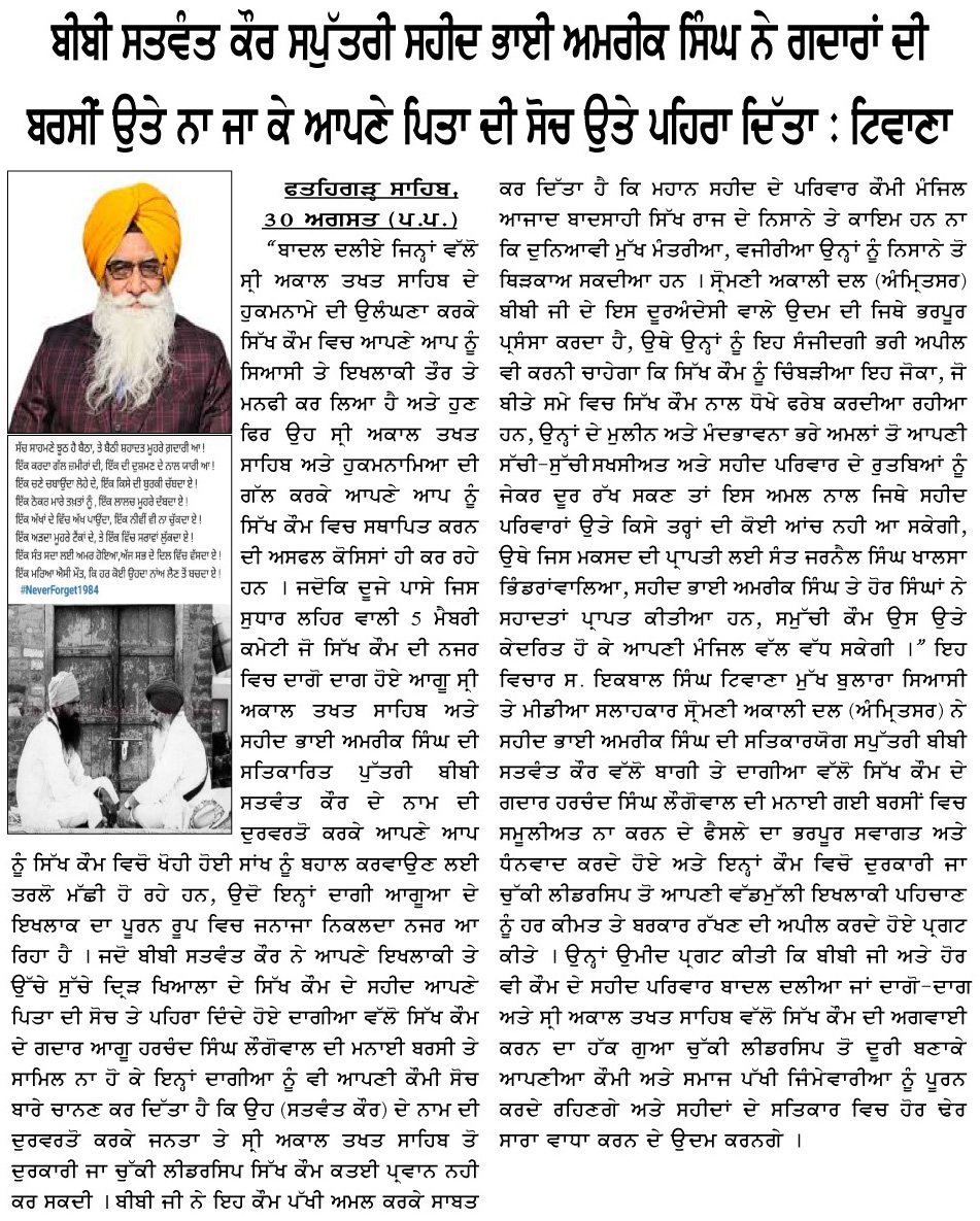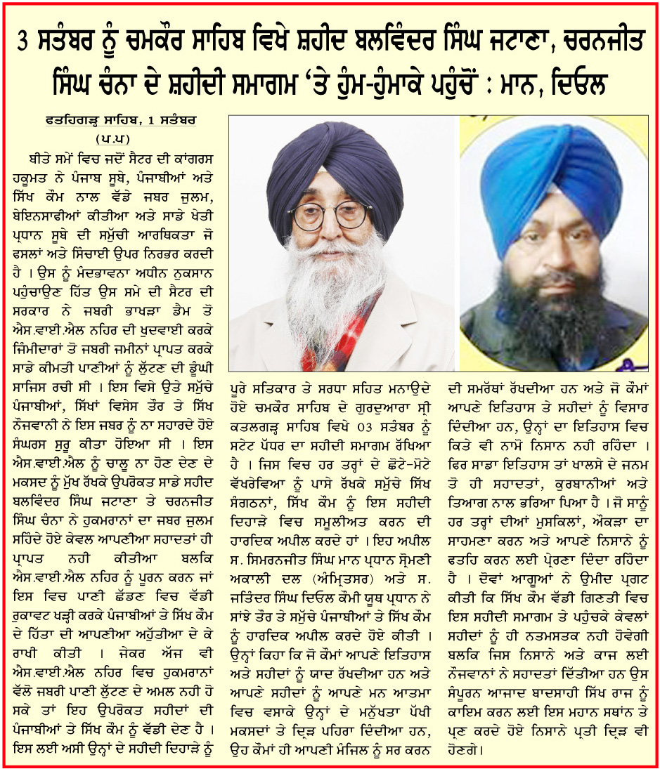 ਸ. ਹਰਮੀਤ ਸਿੰਘ ਪਠਾਣਮਾਜਰਾ ਉਤੇ ਲੱਗੇ ਦੋਸ਼ਾਂ ਦਾ ਕਾਨੂੰਨੀ ਪ੍ਰਕਿਰਿਆ ਅਨੁਸਾਰ ਅਮਲ ਹੋਵੇ ਨਾ ਕਿ ਸਰਕਾਰ ਉਸਦਾ ਝੂਠਾ ਮੁਕਾਬਲਾ ਬਣਾਉਣ ਦੀ ਕੋਸਿਸ ਕਰੇ : ਮਾਨ ਫ਼ਤਹਿਗੜ੍ਹ ਸਾਹਿਬ, 04 ਸਤੰਬਰ (…