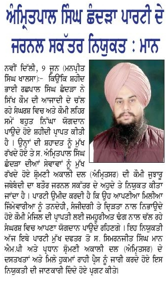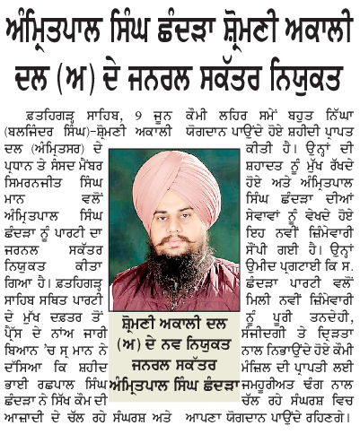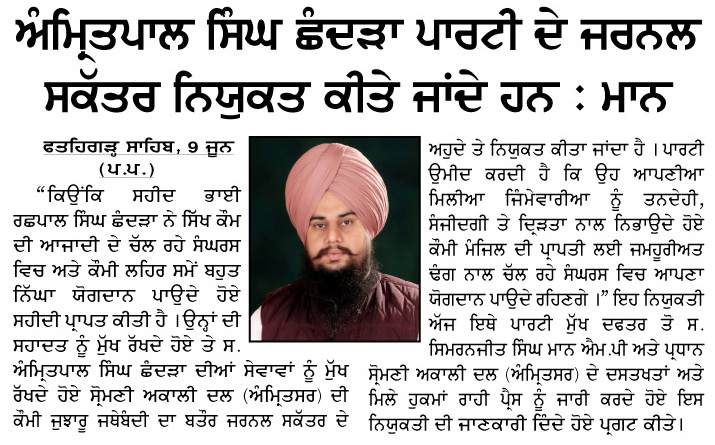 ਅਜੀਤ 10 June 2023 ਪੰਜਾਬ ਟਾਈਮਜ 10 June 2023 ਪਹਿਰੇਦਾਰ 10 June 2023 ਸੱਚ ਦੀ ਪਟਾਰੀ 10 June 2023 Post navigation ਮਾਨ ਨੇ ਸ੍ਰੀ ਅਕਾਲ ਤਖ਼ਤ ਸਾਹਿਬ ਵਿਖੇ ਸ਼ਹੀਦਾਂ ਦੀ ਅਰਦਾਸ ‘ਚ ਪਹੁੰਚਣ ਵਾਲੇ ਸਮੂਹ ਸਿੱਖਾਂ ਦਾ ਕੀਤਾ ਧੰਨਵਾਦ : ਮਾਨ ਸ. ਚਰਨਜੀਤ ਸਿੰਘ ਚੰਨੀ ਸਾਬਕਾ ਮੁੱਖ ਮੰਤਰੀ ਪੰਜਾਬ ਨੂੰ ਵਾਰ-ਵਾਰ ਸੱਦਕੇ ਜ਼ਲੀਲ ਕਰਨ ਦੀ ਕਾਰਵਾਈ ਅਤਿ ਨਿੰਦਣਯੋਗ : ਮਾਨ