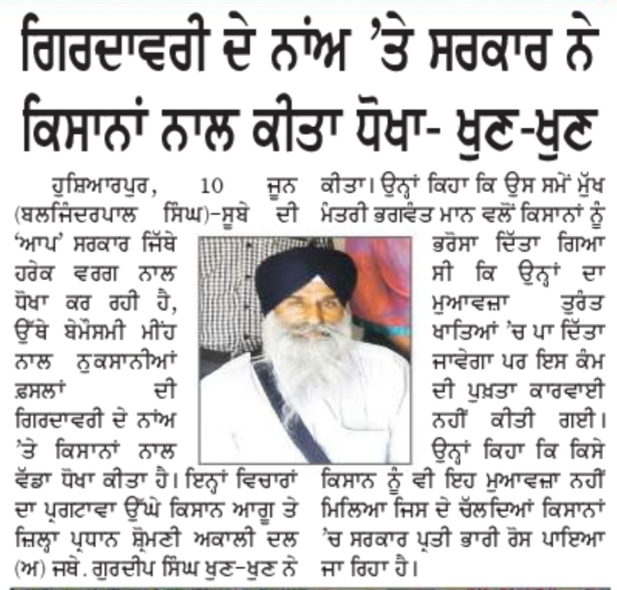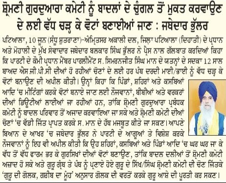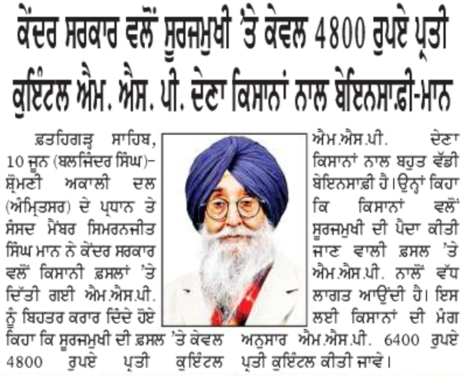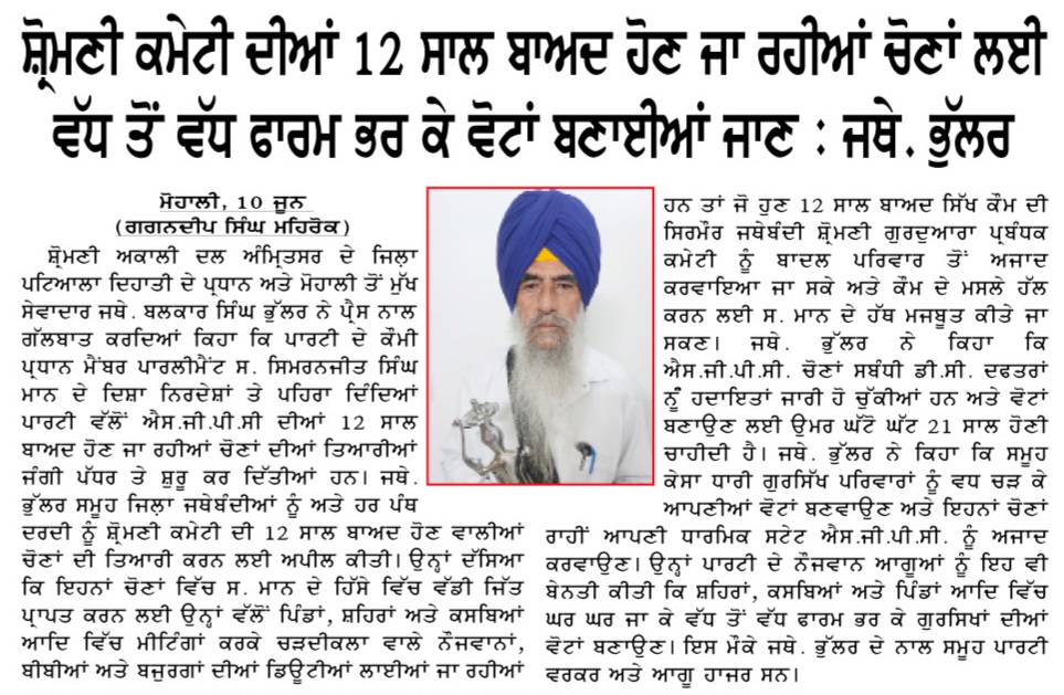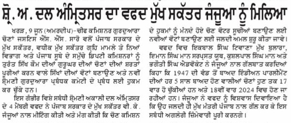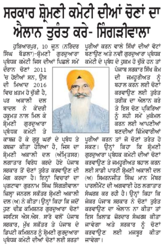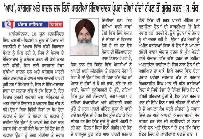 ਅਜੀਤ 11 June 2023 ਪੰਜਾਬ ਟਾਈਮਜ 11 June 2023 ਪਹਿਰੇਦਾਰ 11 June 2023 ਸੱਚ ਦੀ ਪਟਾਰੀ 11 June 2023 Post navigation ਮੀਹ ਸੁਰੂ ਹੋਣ ਤੋਂ ਪਹਿਲਾਂ-ਪਹਿਲਾਂ ਨਹਿਰਾਂ-ਨਾਲਿਆਂ ਦੀ ਪੰਜਾਬ ਸਰਕਾਰ ਸਫਾਈ ਕਰਵਾਏ : ਮਾਨ ‘ਗੁਰਧਾਮਾਂ ਦੇ ਖੁੱਲ੍ਹੇ ਦਰਸ਼ਨ ਦੀਦਾਰੇ’ ਬਾਰੇ ਅਰਦਾਸ ਦੀ ਪੂਰਤੀ ਲਈ ਜਥੇਦਾਰ ਵਿਸ਼ੇਸ਼ ਉੱਦਮ ਕਰਨ : ਮਾਨ