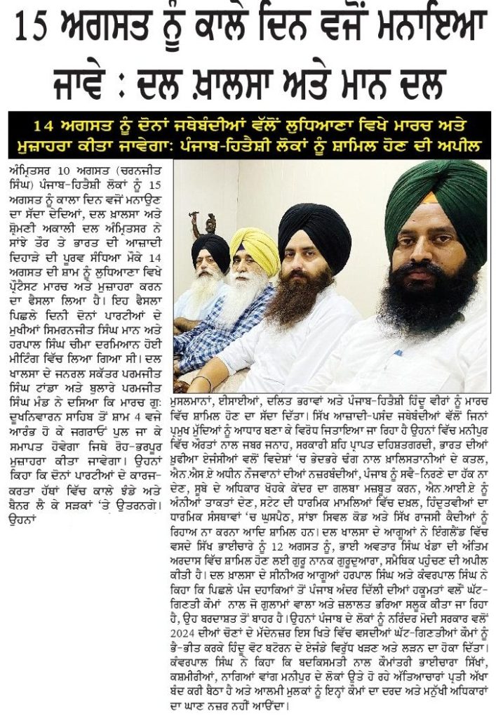 ਪਹਿਰੇਦਾਰ 11 August 2023 ਸੱਚ ਦੀ ਪਟਾਰੀ 11 August 2023 Post navigation ਸਿੱਖ ਆਗੂਆਂ ਦੇ ਹੋ ਰਹੇ ਕਤਲਾਂ ਦਾ ਮੁੱਦਾ ਲੋਕ ਸਭਾ ‘ਚ ਸਿਮਰਨਜੀਤ ਸਿੰਘ ਮਾਨ ਨੇ ਚੁੱਕਿਆ ਸੰਸਦ ਵਿਚ ਐਮ.ਪੀ ਮਾਨ ਨੇ ਸਿੱਧੂ ਮੂਸੇਵਾਲਾ ਦੇ ਕਤਲ ਕੇਸ ਸੰਬੰਧੀ ਸਰਕਾਰ ਨੂੰ ਜਵਾਬ ਦੇਣ ਲਈ ਕੀਤਾ ਮਜ਼ਬੂਰ : ਸੰਧੂ