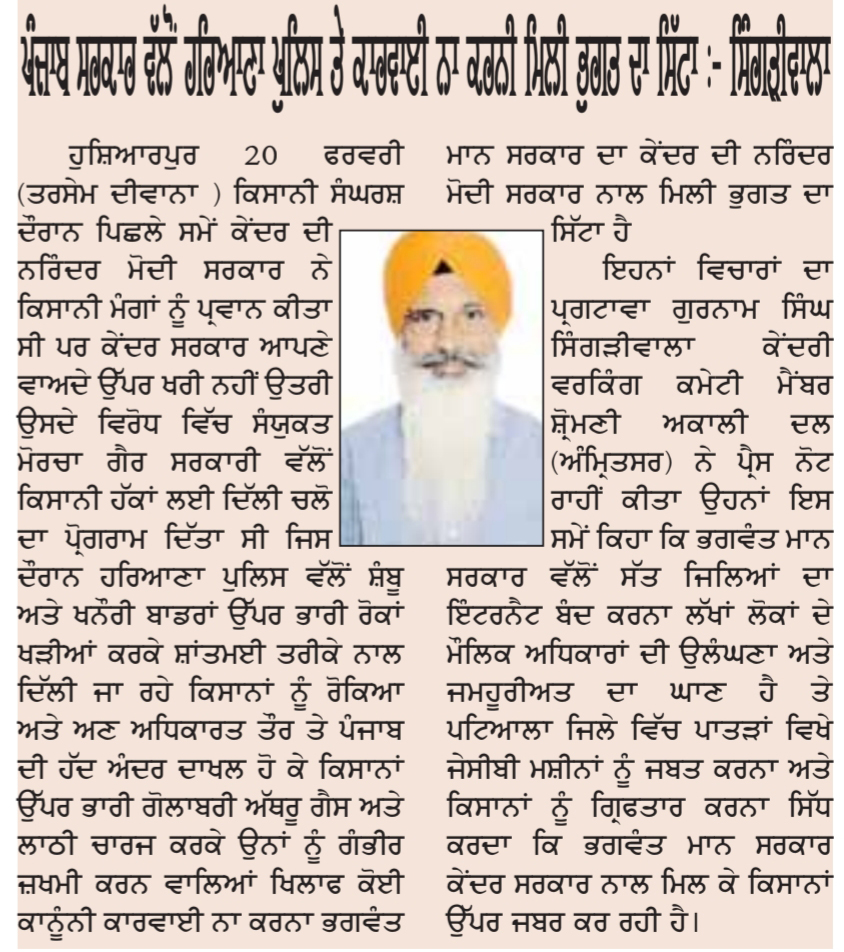 ਪੰਜਾਬ ਟਾਈਮਜ 21 February 2024 ਪਹਿਰੇਦਾਰ 21 February 2024 Post navigation ਹਲਕਾ ਨਿਵਾਸੀਆਂ ਦੀ ਹਰ ਜ਼ਰੂਰਤ ਨੂੰ ਪੂਰਾ ਕਰਨਾ ਮੇਰਾ ਫ਼ਰਜ ਹੈ : ਸਿਮਰਨਜੀਤ ਸਿੰਘ ਮਾਨ ਅਧਿਆਪਕ ਵਰਗ ਨਾਲ ਕੀਤੀ ਜਾ ਰਹੀ ਜਿਆਦਤੀ ਅਸਹਿ, ਇਹ ਵਰਗ ਹੀ ਸਮਾਜ ਨੂੰ ਚੰਗੀ ਅਗਵਾਈ ਦੇਣ ਦੇ ਸਮਰੱਥ ਹੁੰਦੇ ਹਨ : ਮਾਨ