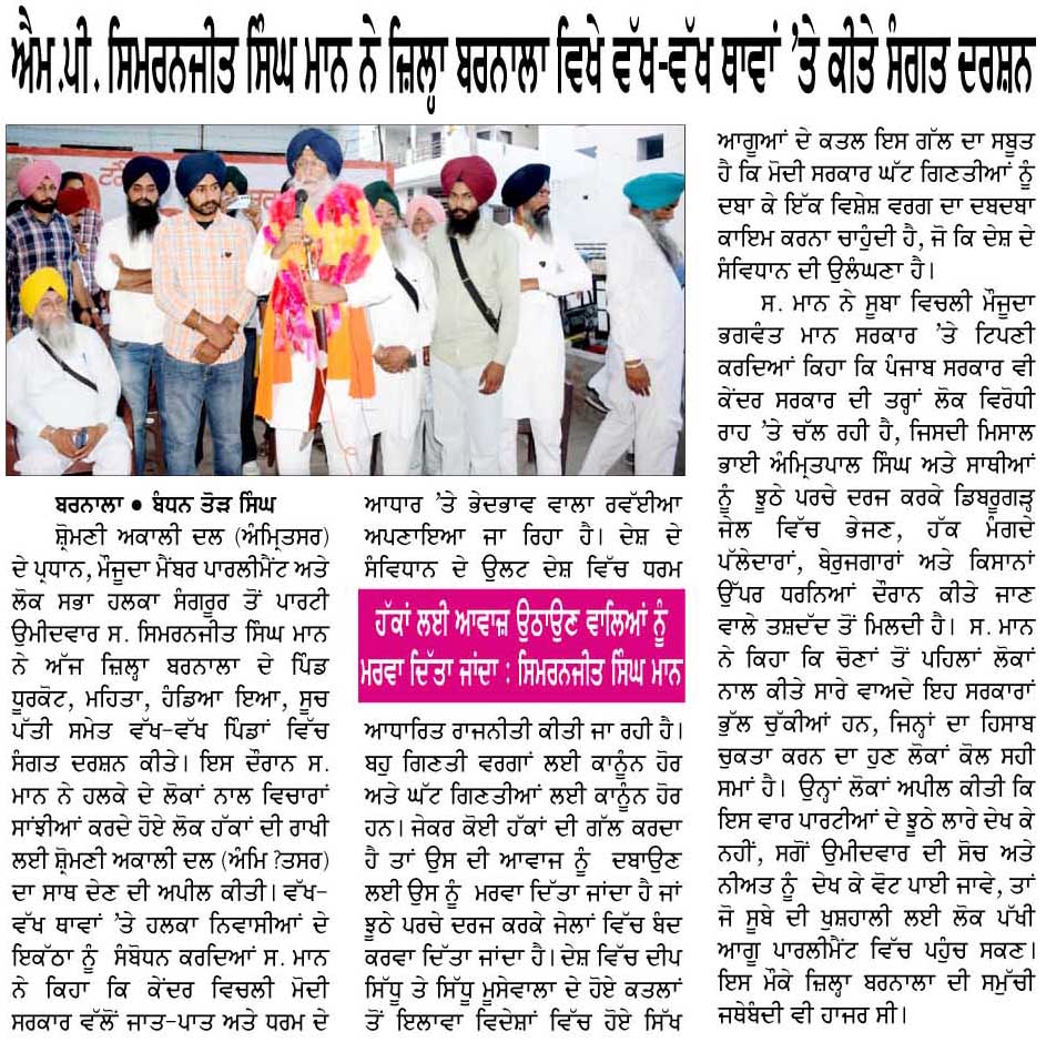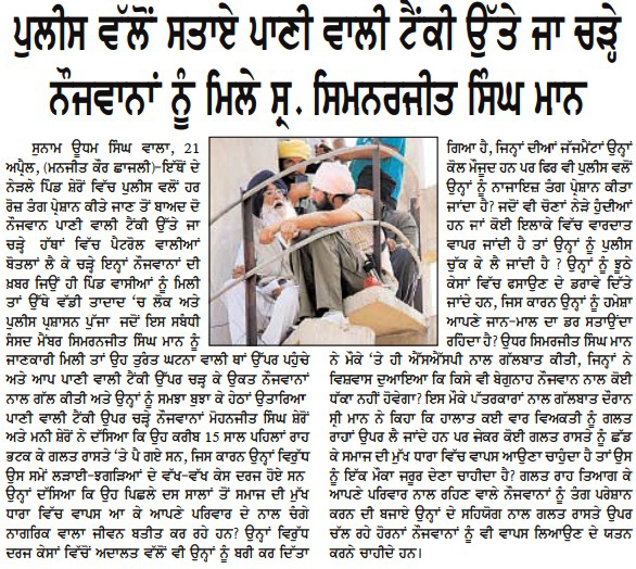 ਪਹਿਰੇਦਾਰ 22 April 2024 ਸੱਚ ਦੀ ਪਟਾਰੀ 22 April 2024 Post navigation ਪੁਲਿਸ ਤੋਂ ਅੱਕ ਕੇ ਟੈਂਕੀ ਤੇ ਚੜ੍ਹੇ ਨੌਜਵਾਨ, ਐਮ.ਪੀ. ਮਾਨ ਨੇ ਸਮਝਾਕੇ ਹੇਠਾਂ ਉਤਾਰੇ ਪੰਜਾਬ ਪੁਲਿਸ ਦੇ ਮੁਲਾਜ਼ਮਾਂ ਦੀ ਰੋਕੀ ਗਈ ਤਨਖਾਹ ਦੀ ਬਦੌਲਤ ਪੁਲਿਸ ਵਿਚ ਵੱਡੀ ਬੇਚੈਨੀ ਫੈਲਣ ਦਾ ਡਰ, ਤੁਰੰਤ ਭੁਗਤਾਨ ਕੀਤਾ ਜਾਵੇ : ਮਾਨ