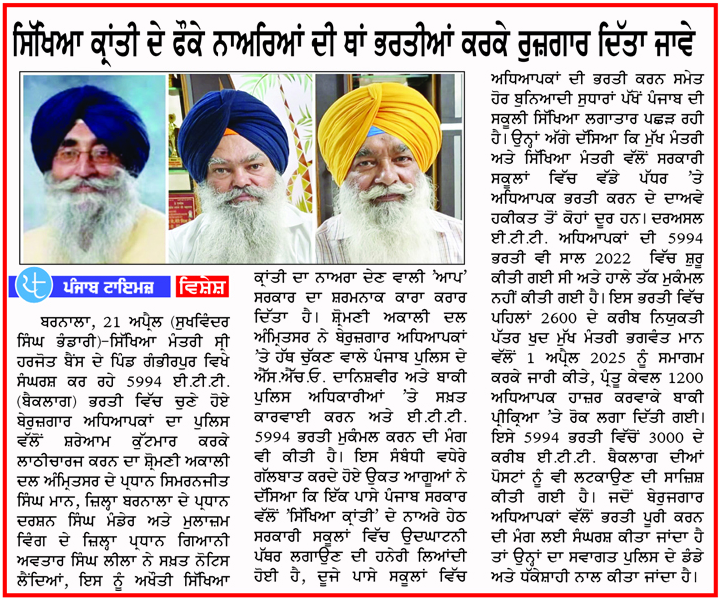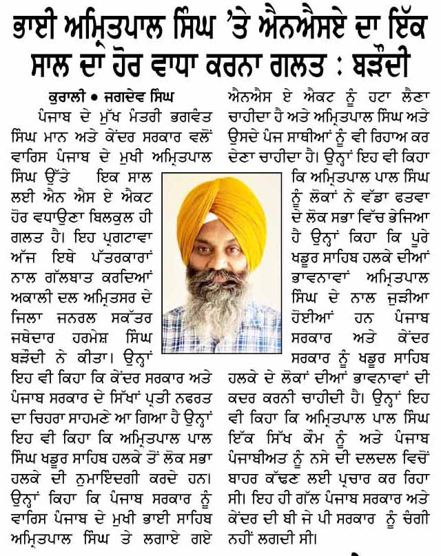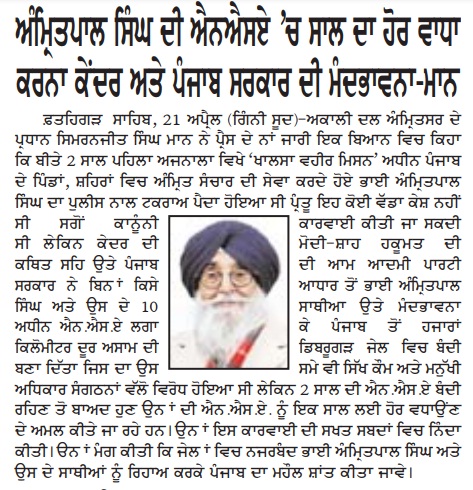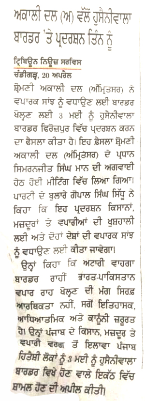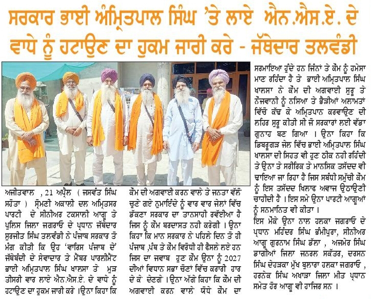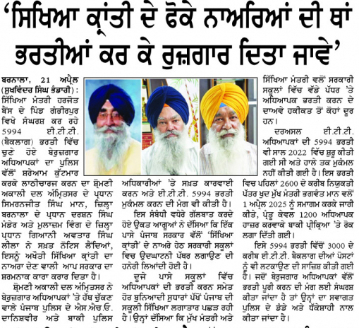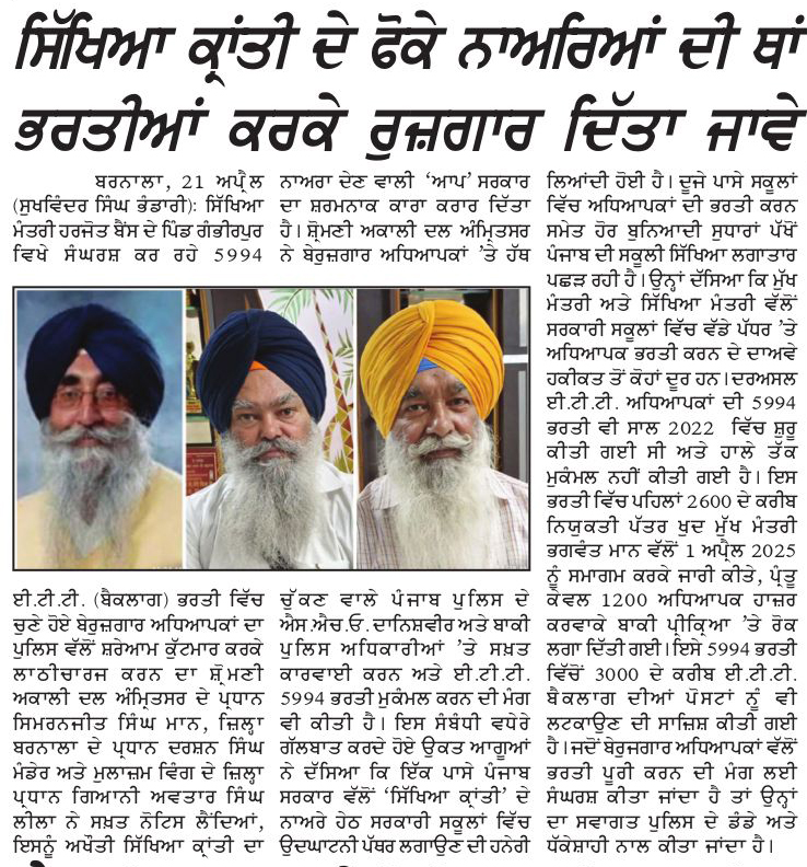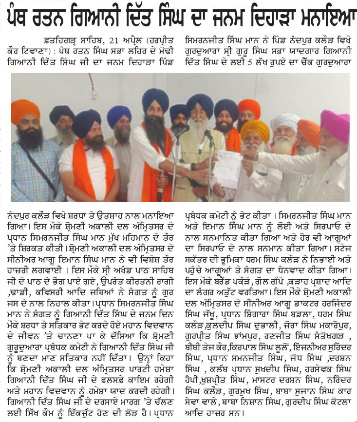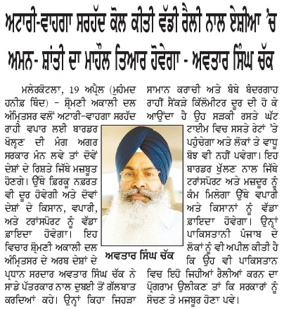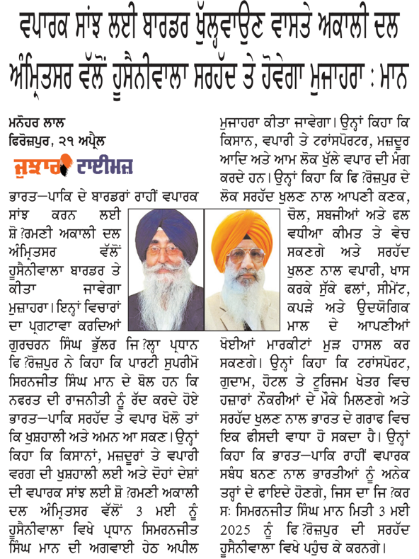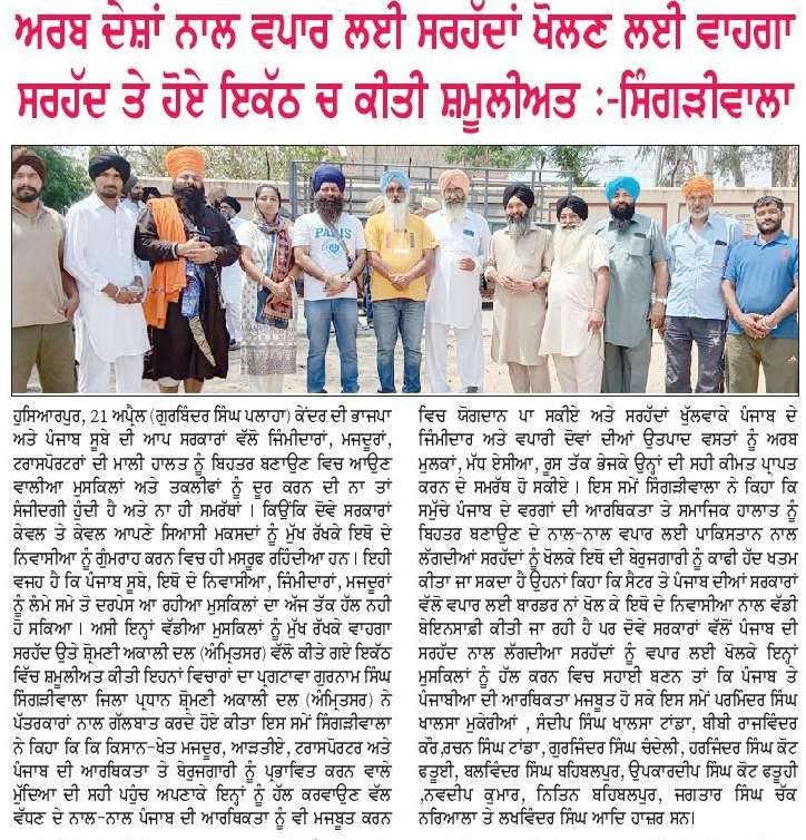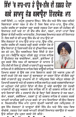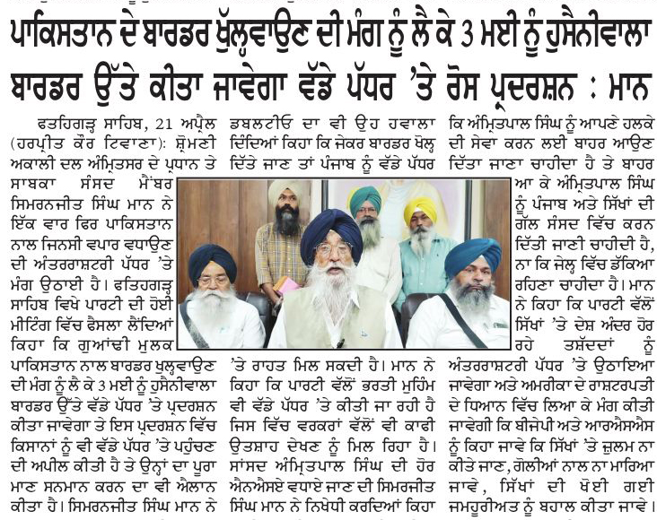 ਪਹਿਰੇਦਾਰ 22 April 2025 ਸੱਚ ਦੀ ਪਟਾਰੀ 22 April 2025 ਰੋਜ਼ਾਨਾ ਸਪੋਕਸਮੈਨ 22 April 2025 Post navigation ਸ਼੍ਰੋਮਣੀ ਅਕਾਲੀ ਦਲ (ਅੰਮ੍ਰਿਤਸਰ) ਹੁਣ ਪੰਜਾਬ ਦੇ ਭਾਰਤ-ਪਾਕਿ ਬਾਰਡਰ ਖੋਲ੍ਹਣ ਦੀ ਮੰਗ ਨੂੰ ਲੈਕੇ 3 ਮਈ ਨੂੰ ਹੁਸੈਨੀਵਾਲਾ ‘ਚ ਕਰੇਗਾ ਪ੍ਰਦਰਸ਼ਨ ਰੋਮਨ ਕੈਥੋਲਿਕ ਚਰਚ ਦੇ 266ਵੇਂ ਪੋਪ ਫਰਾਂਸਿਸ ਦੇ ਹੋਏ ਅਕਾਲ ਚਲਾਣੇ ‘ਤੇ ਸ. ਮਾਨ ਨੇ ਗਹਿਰੇ ਦੁੱਖ ਦਾ ਪ੍ਰਗਟਾਵਾ ਕੀਤਾ