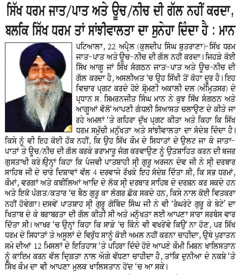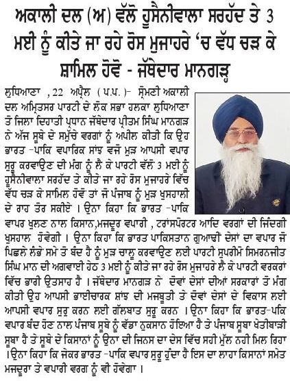 ਪਹਿਰੇਦਾਰ 23 April 2025 ਸੱਚ ਦੀ ਪਟਾਰੀ 23 April 2025 Post navigation ਵਪਾਰਕ ਸਾਂਝ ਲਈ ਹੁਸੈਨੀਵਾਲਾ ਸਰਹੱਦ ਖੁਲਵਾਉਣ ਲਈ ਸ਼੍ਰੋਮਣੀ ਅਕਾਲੀ ਦਲ (ਅੰਮ੍ਰਿਤਸਰ) ਦਾ ਮੁਜਾਹਰਾ 3 ਮਈ ਨੂੰ ਸਿਮਰਨਜੀਤ ਸਿੰਘ ਮਾਨ ਵੱਲੋ ਪਹਿਲਗਾਮ ਵਿਖੇ ਬਿਨ੍ਹਾਂ ਵਜਹ ਯਾਤਰੂਆਂ ਨੂੰ ਮਾਰਨ ਤੇ ਦੁੱਖ ਦਾ ਪ੍ਰਗਟਾਵਾ