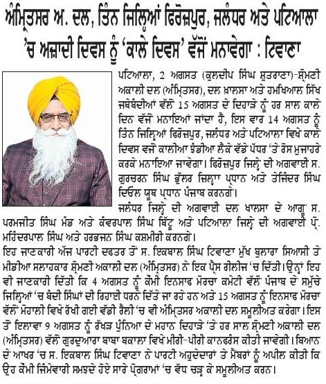 ਪਹਿਰੇਦਾਰ 03 August 2025 Post navigation ਕਿਸੇ ਦੀ ਵੀ ਨਿੱਜੀ ਜਾਇਦਾਦ, ਉਸ ਦੇ ਮਾਲਿਕ ਦੀ ਪ੍ਰਵਾਨਗੀ ਤੋਂ ਬਿਨ੍ਹਾਂ ਜਬਰੀ ਨਹੀ ਖੋਹੀ ਜਾ ਸਕਦੀ : ਮਾਨ ਸ਼੍ਰੋਮਣੀ ਅਕਾਲੀ ਦਲ (ਅੰਮ੍ਰਿਤਸਰ) ਦੀ ਜਿ਼ਲ੍ਹਾ ਇਕਾਈ ਦੀ ਮੀਟਿੰਗ