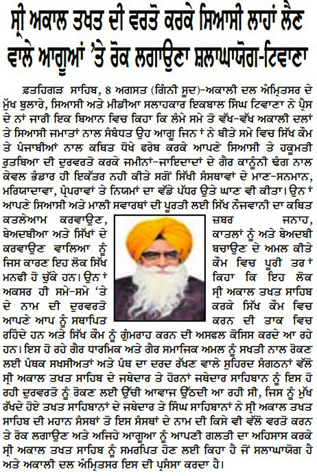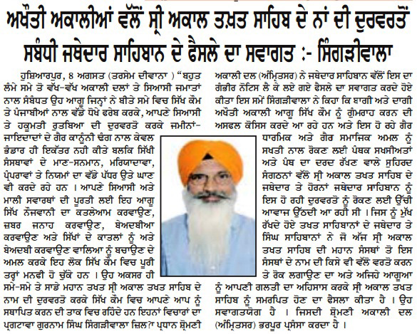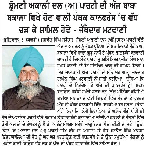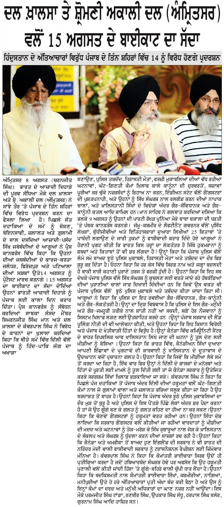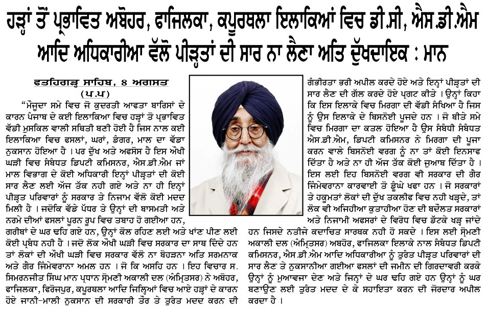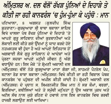 ਪਹਿਰੇਦਾਰ 09 August 2025 ਸੱਚ ਦੀ ਪਟਾਰੀ 09 August 2025 ਰੋਜ਼ਾਨਾ ਸਪੋਕਸਮੈਨ 09 August 2025 Post navigation ਹੜ੍ਹਾਂ ਤੋਂ ਪ੍ਰਭਾਵਿਤ ਅਬੋਹਰ, ਫਾਜਿਲਕਾ, ਕਪੂਰਥਲਾ ਆਦਿ ਇਲਾਕਿਆ ਦੇ ਨਿਵਾਸੀਆਂ ਨੂੰ ਫੌਰੀ ਸਰਕਾਰੀ ਮਦਦ ਪ੍ਰਦਾਨ ਕੀਤੀ ਜਾਵੇ : ਮਾਨ ਸ਼੍ਰੋਮਣੀ ਅਕਾਲੀ ਦਲ (ਅੰਮ੍ਰਿਤਸਰ) ਵੱਲੋਂ ਰੱਖੜ ਪੁੰਨਿਆਂ ਮੌਕੇ ਬਾਬਾ ਬਕਾਲਾ ਸਾਹਿਬ ਵਿਖੇ ਕੀਤੀ ਪੰਥਕ ਕਾਨਫਰੰਸ
