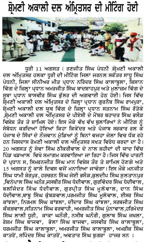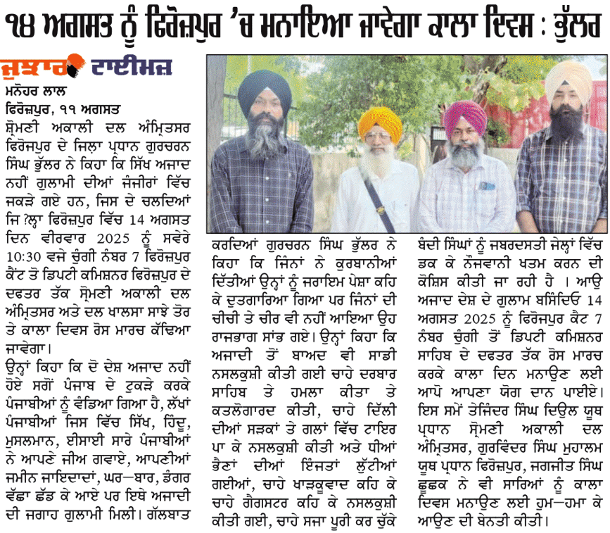 ਪਹਿਰੇਦਾਰ 12 August 2025 Post navigation ਜੇਕਰ ਸੰਗੀਨ ਜੁਰਮਾਂ ਵਾਲਿਆ ਨੂੰ ਹਕੂਮਤਾਂ ਆਪਣੇ ਸਵਾਰਥ ਲਈ ਜੇਲ੍ਹਾਂ ‘ਚੋ ਛੱਡ ਰਹੀਆ ਨੇ ਤਾਂ ਇਨਸਾਫ਼ ਨਾਂ ਦੀ ਚੀਜ ਦਾ ਤਾਂ ਭੋਗ ਪੈ ਜਾਵੇਗਾ : ਮਾਨ ਲੈਡ ਪੂਲਿੰਗ ਦੇ ਅਮਲ ਪੰਜਾਬੀਆਂ ਤੇ ਸਿੱਖ ਕੌਮ ਦੀਆਂ ਭਾਵਨਾਵਾ ਦੇ ਵਿਰੁੱਧ ਸੀ, ਪੰਜਾਬ ਸਰਕਾਰ ਨੇ ਇਸ ਨੂੰ ਵਾਪਸ ਲੈਕੇ ਚੰਗਾਂ ਉਦਮ ਕੀਤਾ : ਮਾਨ