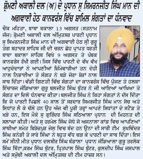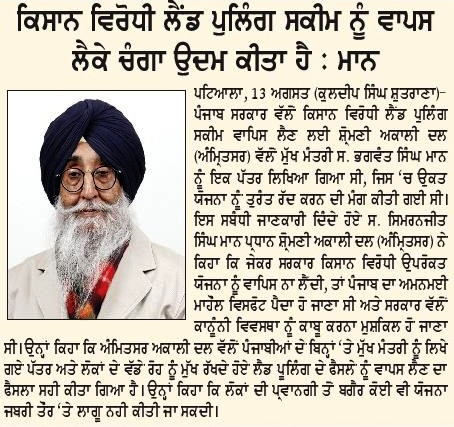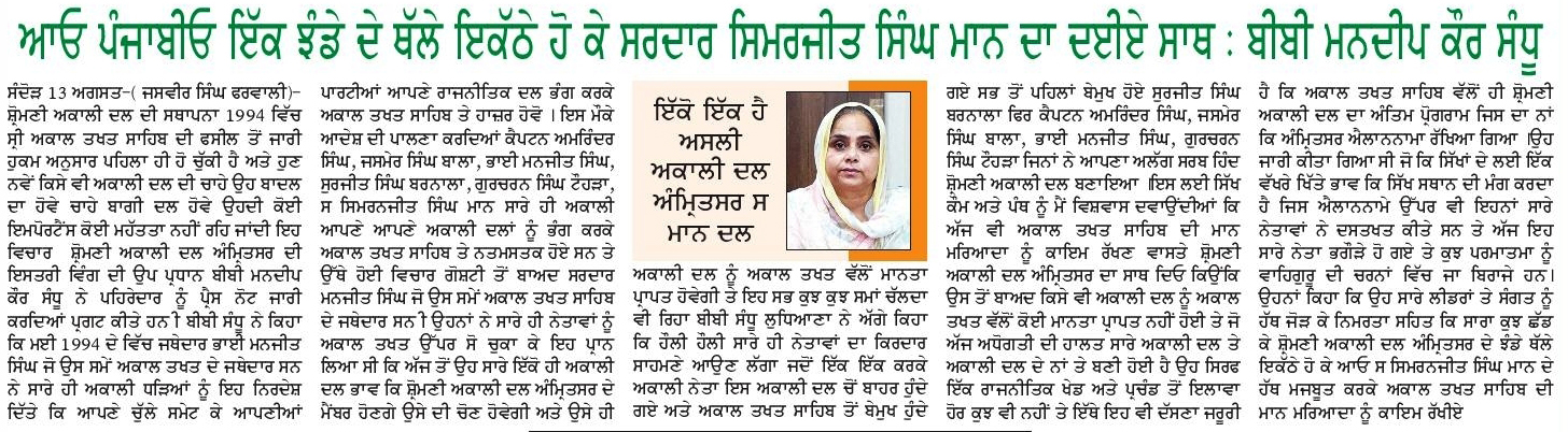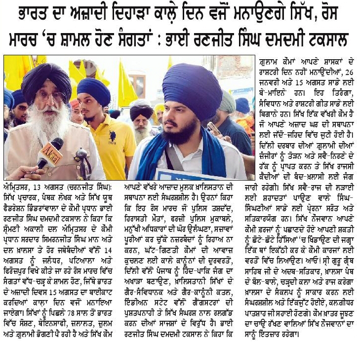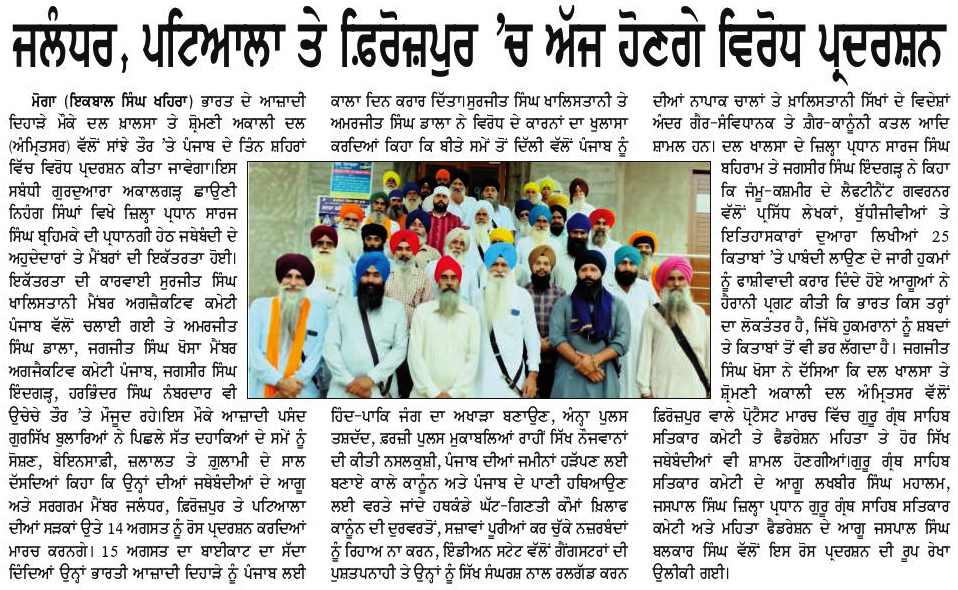 ਪਹਿਰੇਦਾਰ 14 August 2025 ਸੱਚ ਦੀ ਪਟਾਰੀ 14 August 2025 Post navigation ਲੈਡ ਪੂਲਿੰਗ ਦੇ ਅਮਲ ਪੰਜਾਬੀਆਂ ਤੇ ਸਿੱਖ ਕੌਮ ਦੀਆਂ ਭਾਵਨਾਵਾ ਦੇ ਵਿਰੁੱਧ ਸੀ, ਪੰਜਾਬ ਸਰਕਾਰ ਨੇ ਇਸ ਨੂੰ ਵਾਪਸ ਲੈਕੇ ਚੰਗਾਂ ਉਦਮ ਕੀਤਾ : ਮਾਨ ਸਿੱਖ ਜਥੇਬੰਦੀਆਂ ਨੇ ਕਾਲੀਆ ਪੱਟੀਆ ਬੰਨ੍ਹ ਕੀਤਾ ਰੋਸ ਮੁਜ਼ਾਹਰਾ