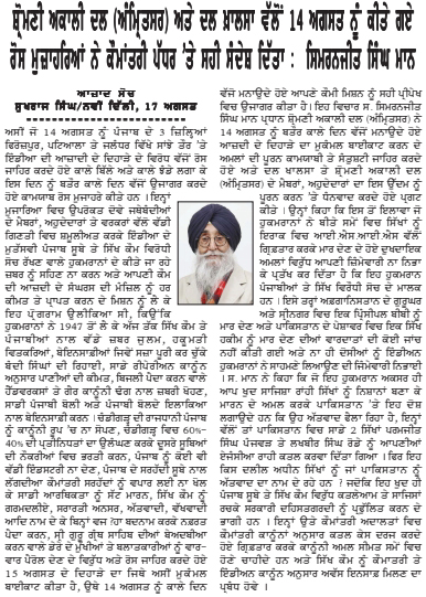 ਪਹਿਰੇਦਾਰ 18 August 2025 Post navigation ਸ਼੍ਰੋਮਣੀ ਅਕਾਲੀ ਦਲ (ਅੰਮ੍ਰਿਤਸਰ) ਅਤੇ ਦਲ ਖਾਲਸਾ ਵੱਲੋ 14 ਅਗਸਤ ਨੂੰ ਕੀਤੇ ਗਏ ਰੋਸ ਮੁਜਾਹਰਿਆ ਨੇ ਕੌਮਾਂਤਰੀ ਪੱਧਰ ਤੇ ਸਹੀ ਸੰਦੇਸ਼ ਦਿੱਤਾ : ਮਾਨ ਜੇਕਰ ਅੱਜ ਪੰਜਾਬ ਦੇ ਮੁਕਤਸਰ, ਅਬੋਹਰ, ਫਾਜਿਲਕਾ, ਕਪੂਰਥਲਾ ਵਿਚ ਹੜ੍ਹ ਆਉਣ ਕਾਰਨ ਵੱਡਾ ਨੁਕਸਾਨ ਹੋਇਆ ਹੈ, ਤਾਂ ਉਸ ਲਈ ਰਵੇਨਿਊ ਵਿਭਾਗ ਦੇ ਅਧਿਕਾਰੀ ਤੇ ਸਰਕਾਰ ਜਿੰਮੇਵਾਰ ਹੈ : ਮਾਨ