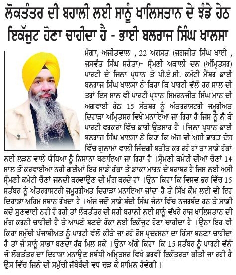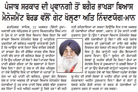 ਪਹਿਰੇਦਾਰ 23 August 2025 ਰੋਜ਼ਾਨਾ ਸਪੋਕਸਮੈਨ 23 August 2025 Post navigation ਮੁਨੀਸ ਸਿੰਸੋਦੀਆ ਵਰਗੇ ਦਿੱਲੀ ਤੋ ਪੰਜਾਬ ਆਏ ਸਿਆਸਤਦਾਨਾਂ ਦੀ ਗੁੰਡਾਗਰਦੀ ਪੰਜਾਬੀ ਤੇ ਸਿੱਖ ਕੌਮ ਕਦਾਚਿੱਤ ਸਹਿਣ ਨਹੀ ਕਰਨਗੇ : ਟਿਵਾਣਾ ਕੌਮੀ ਸਿਧਾਤਾਂ ਅਤੇ ਇਖਲਾਕ ਤੋ ਡਿੱਗ ਚੁੱਕੇ ਧੜੇ ਅਤੇ ਆਗੂ ਸਿੱਖ ਕੌਮ ਦੀ ਨੁਮਾਇੰਦਾ ਜਮਾਤ ਕਦਾਚਿਤ ਨਹੀ ਕਹਿਲਾਅ ਸਕਦੈ : ਮਾਨ
