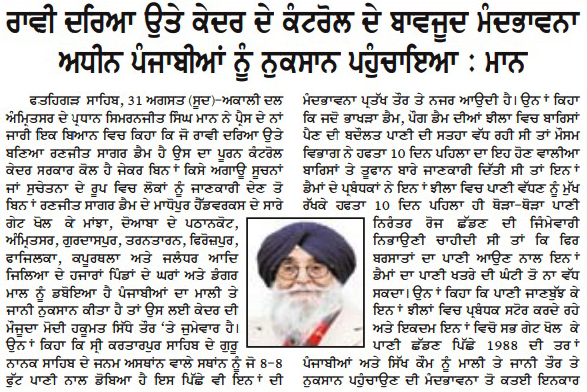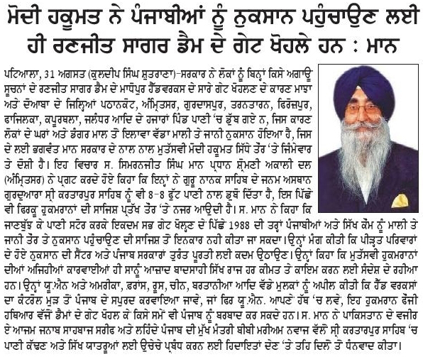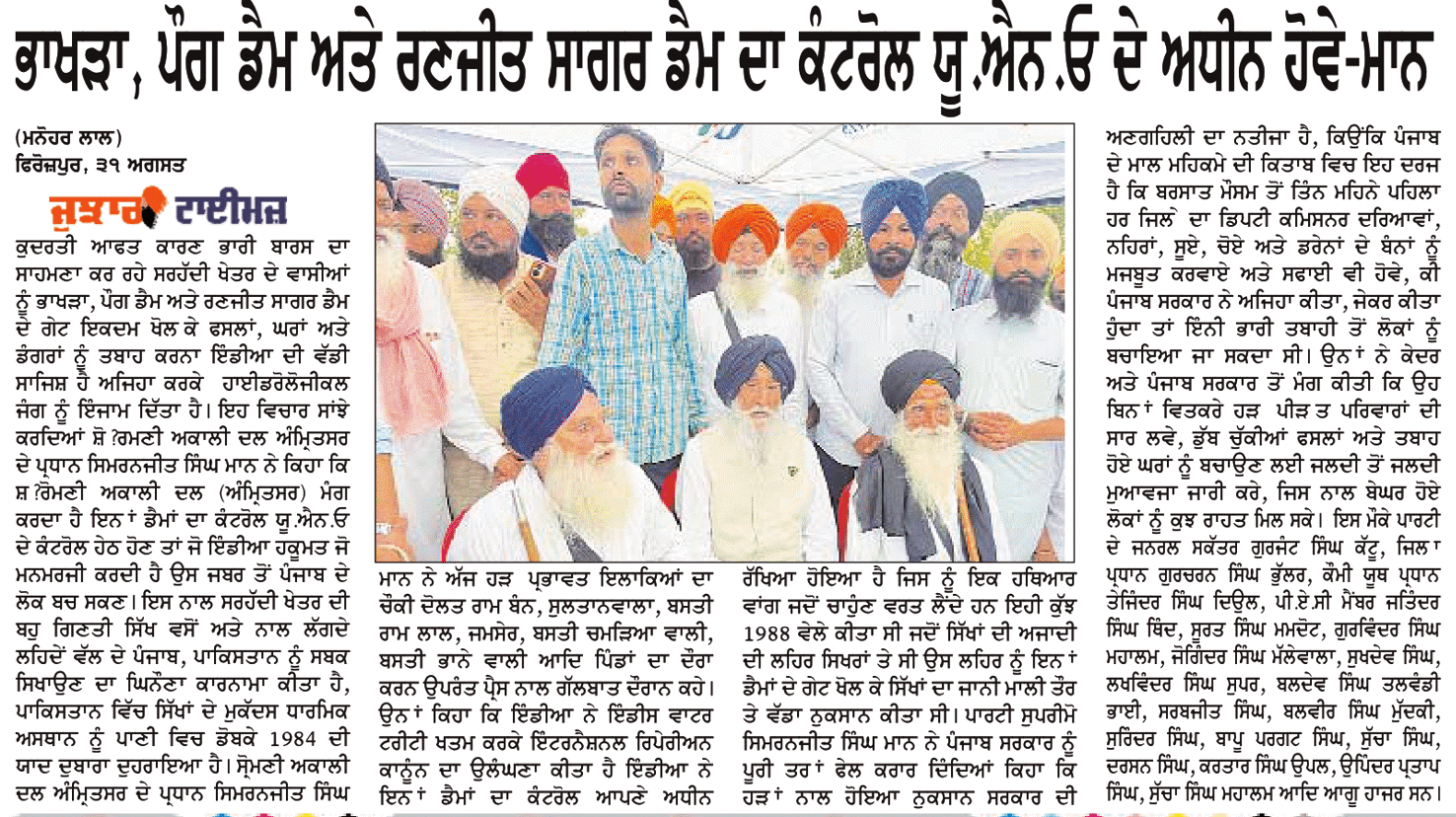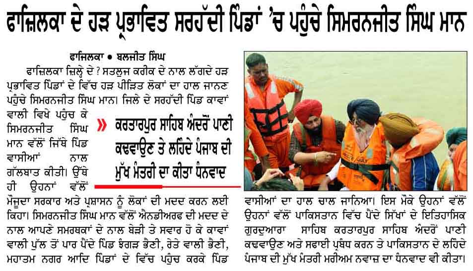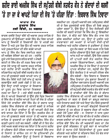 ਪਹਿਰੇਦਾਰ 01 September 2025 ਰੋਜ਼ਾਨਾ ਸਪੋਕਸਮੈਨ 01 September 2025 Post navigation ਬੀਬੀ ਸਤਵੰਤ ਕੌਰ ਸਪੁੱਤਰੀ ਸ਼ਹੀਦ ਭਾਈ ਅਮਰੀਕ ਸਿੰਘ ਨੇ ਗਦਾਰਾਂ ਦੀ ਬਰਸੀਂ ਉਤੇ ਨਾ ਜਾ ਕੇ ਆਪਣੇ ਪਿਤਾ ਦੀ ਸੋਚ ਉਤੇ ਪਹਿਰਾ ਦਿੱਤਾ : ਟਿਵਾਣਾ 03 ਸਤੰਬਰ ਨੂੰ ਚਮਕੌਰ ਸਾਹਿਬ ਵਿਖੇ ਸ਼ਹੀਦ ਬਲਵਿੰਦਰ ਸਿੰਘ ਜਟਾਣਾ, ਚਰਨਜੀਤ ਸਿੰਘ ਚੰਨਾ ਦੇ ਸ਼ਹੀਦੀ ਸਮਾਗਮ ‘ਤੇ ਹੁੰਮ-ਹੁੰਮਾਕੇ ਪਹੁੰਚੋਂ : ਮਾਨ, ਦਿਓਲ