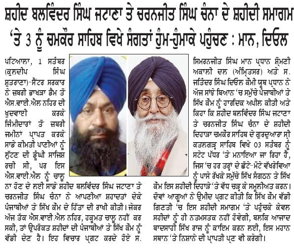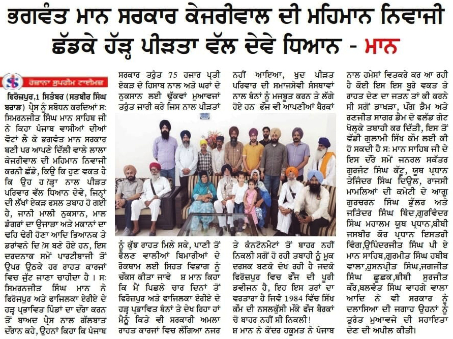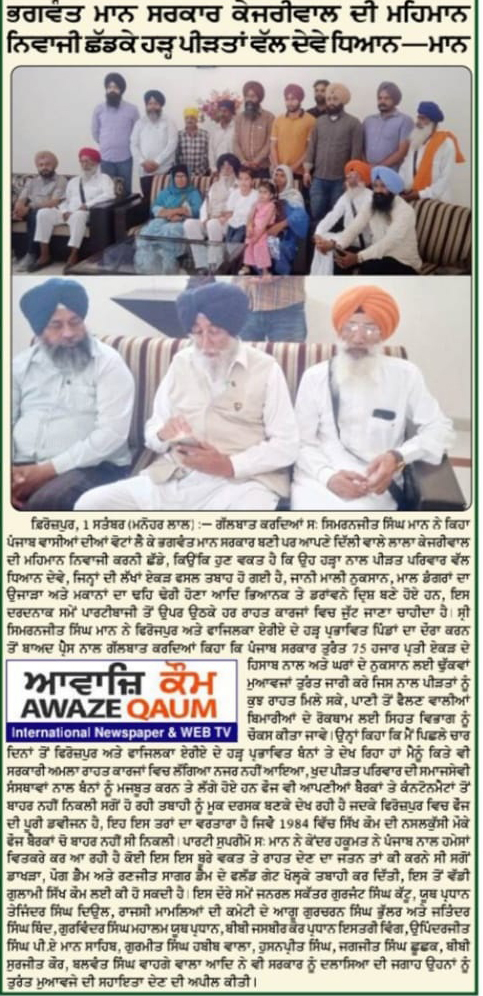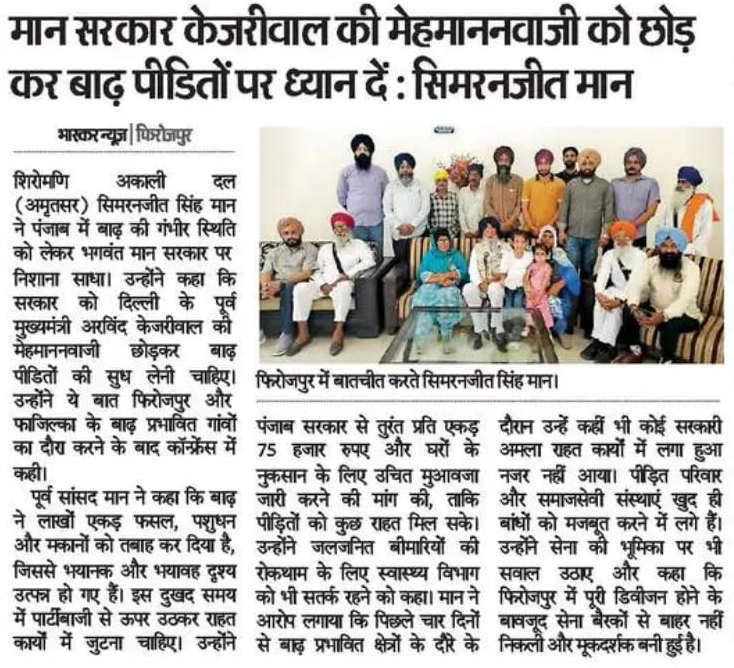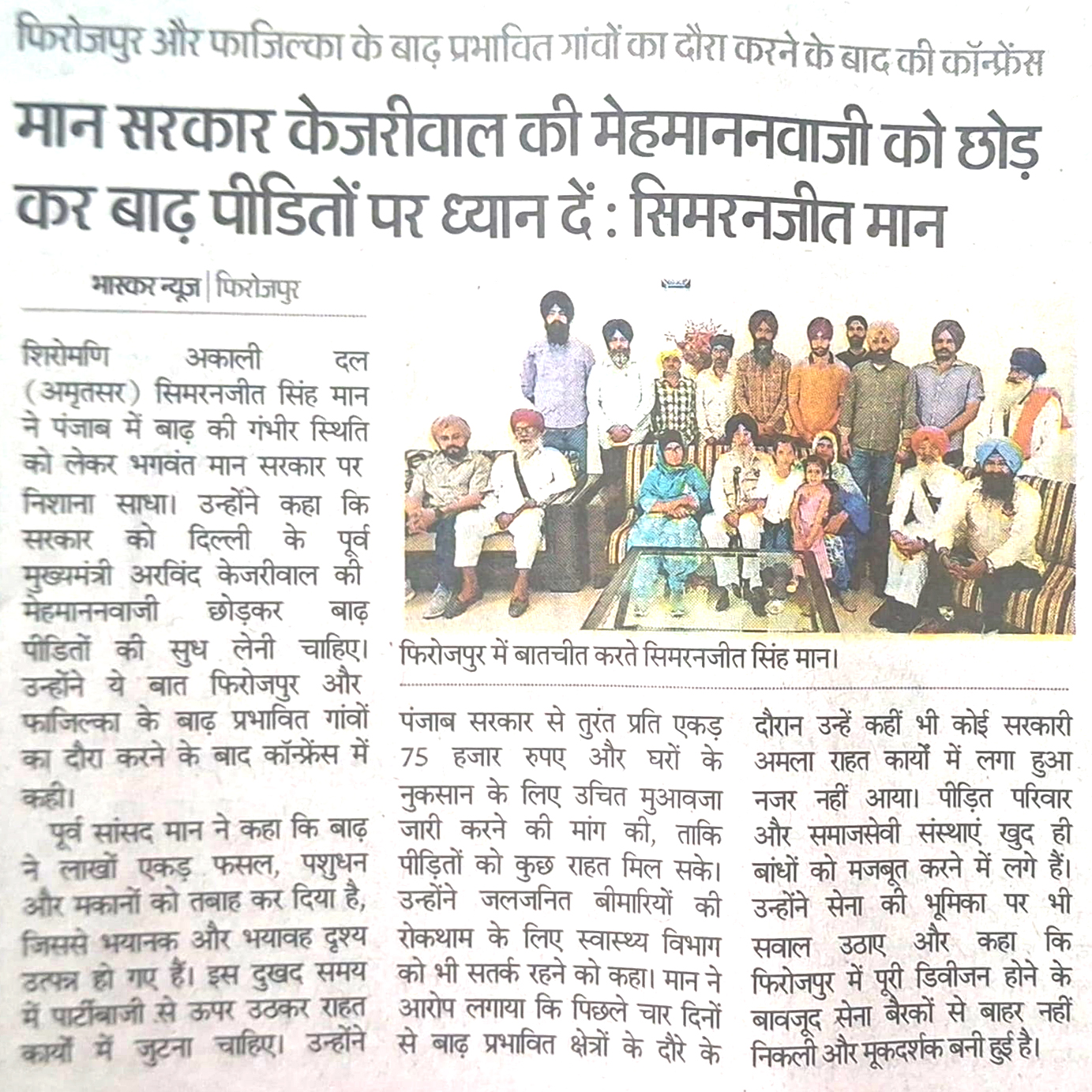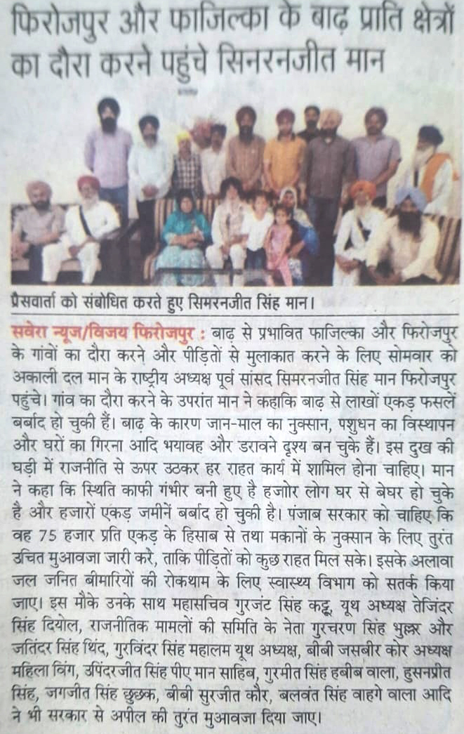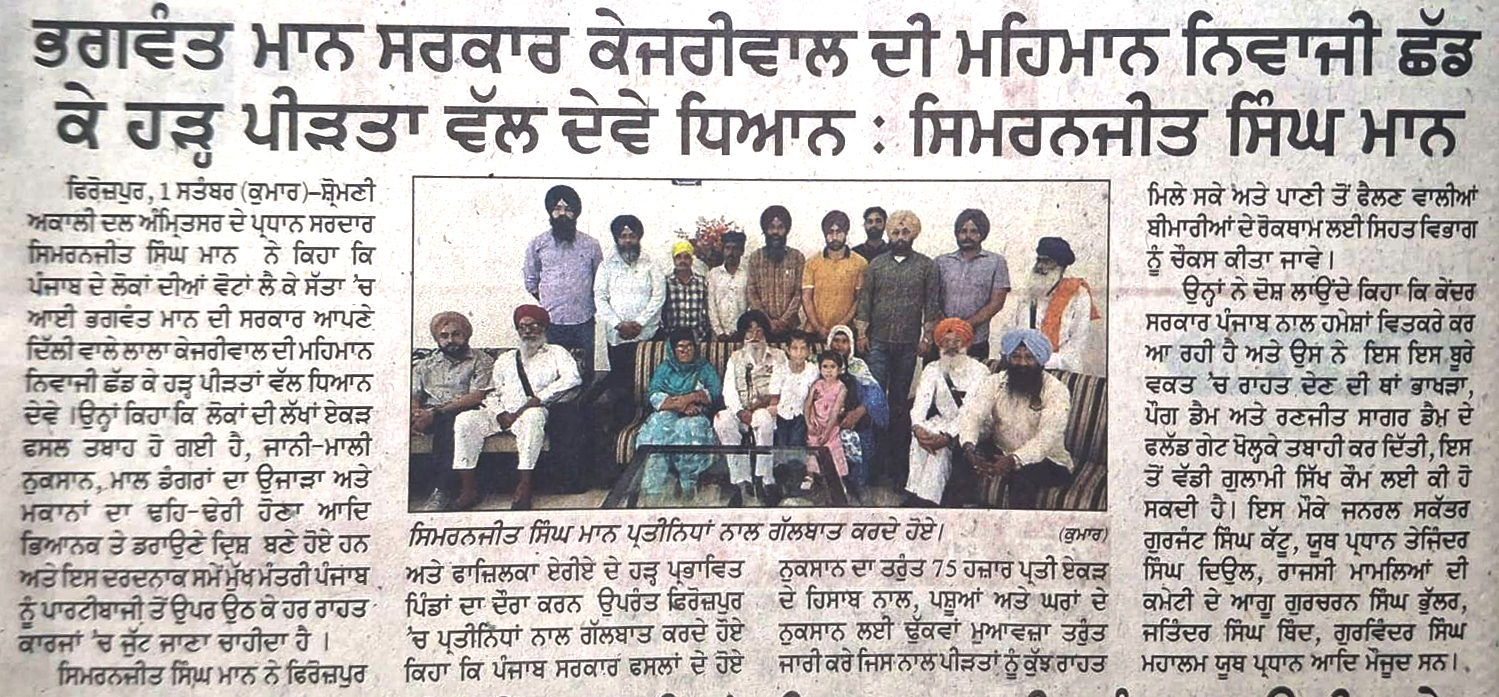 ਪਹਿਰੇਦਾਰ 02 September 2025 ਸੱਚ ਦੀ ਪਟਾਰੀ 02 September 2025 Post navigation ਰਾਵੀ ‘ਤੇ ਕੇਂਦਰ ਦੇ ਕੰਟਰੋਲ ਦੇ ਬਾਵਜੂਦ ਹੋਇਆ ਨੁਕਸਾਨ : ਮਾਨ ਜੇਕਰ ਸਿੱਖ ਅਟਕ ਦਰਿਆ ਰੋਕ ਸਕਦੇ ਹਨ, ਬੰਨ੍ਹਾ ਦੇ ਤੇਜ ਆ ਰਹੇ ਪਾਣੀ ਨੂੰ ਮਿੱਟੀ ਦੇ ਬੰਨ੍ਹ ਲਗਾਕੇ ਰੋਕ ਸਕਦੇ ਹਨ, ਫਿਰ ਖ਼ਾਲਿਸਤਾਨ ਕਿਉਂ ਨਹੀਂ ਚਲਾ ਸਕਦੇ ? : ਮਾਨ