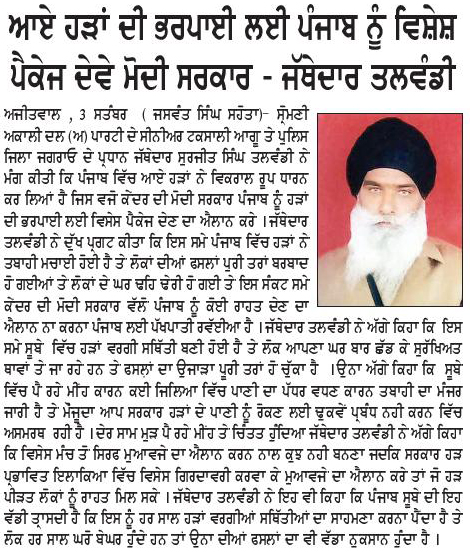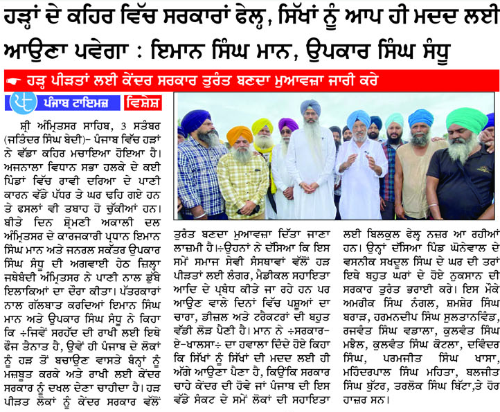 ਪਹਿਰੇਦਾਰ 04 September 2025 Post navigation ਜੇਕਰ ਸਿੱਖ ਅਟਕ ਦਰਿਆ ਰੋਕ ਸਕਦੇ ਹਨ, ਬੰਨ੍ਹਾ ਦੇ ਤੇਜ ਆ ਰਹੇ ਪਾਣੀ ਨੂੰ ਮਿੱਟੀ ਦੇ ਬੰਨ੍ਹ ਲਗਾਕੇ ਰੋਕ ਸਕਦੇ ਹਨ, ਫਿਰ ਖ਼ਾਲਿਸਤਾਨ ਕਿਉਂ ਨਹੀਂ ਚਲਾ ਸਕਦੇ ? : ਮਾਨ ਸ਼੍ਰੋਮਣੀ ਅਕਾਲੀ ਦਲ (ਅੰਮ੍ਰਿਤਸਰ) ਨੇ ਸ਼ਹੀਦ ਭਾਈ ਜਸਵੰਤ ਸਿੰਘ ਖਾਲੜਾ ਦੀ ਯਾਦ ‘ਚ ਸੈਮੀਨਰ ਕਰਵਾਇਆ