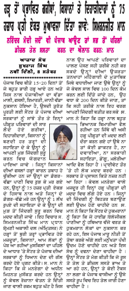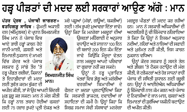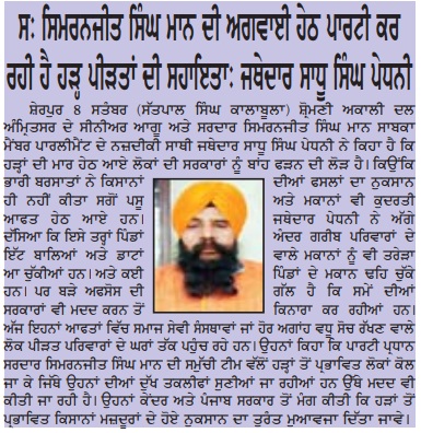 ਪਹਿਰੇਦਾਰ 09 September 2025 ਸੱਚ ਦੀ ਪਟਾਰੀ 09 September 2025 Post navigation ਘੱਗਰ ਦੇ ਸਥਾਈ ਹੱਲ ਲਈ ਸ੍ਰੀ ਨਰਿੰਦਰ ਮੋਦੀ ਵਿਸ਼ੇਸ਼ ਪੈਕਜ ਦੇਣ : ਸਿਮਰਨਜੀਤ ਸਿੰਘ ਮਾਨ ਹੜ੍ਹ ਪ੍ਰਭਾਵਿਤ ਕਿਸਾਨਾਂ ਨੂੰ 75 ਹਜਾਰ ਪ੍ਰਤੀ ਏਕੜ ਮੁਆਵਜਾ ਦਿੱਤਾ ਜਾਵੇ : ਮਾਨ