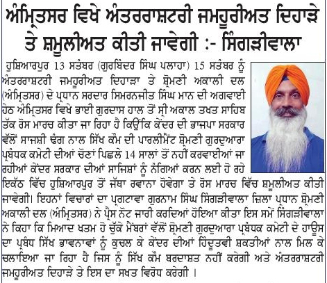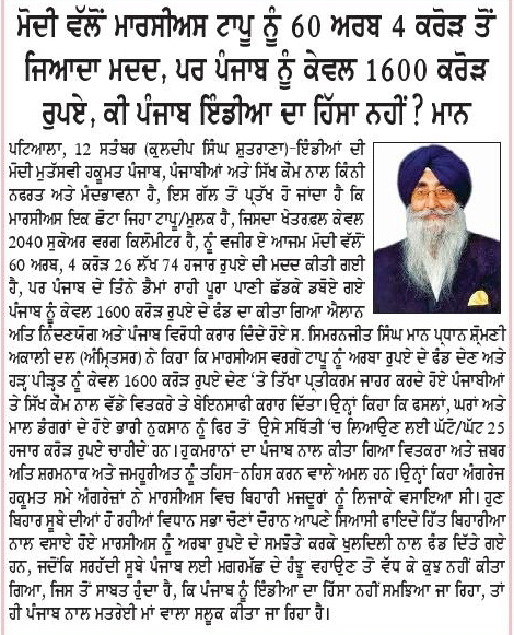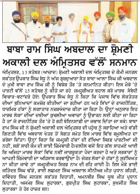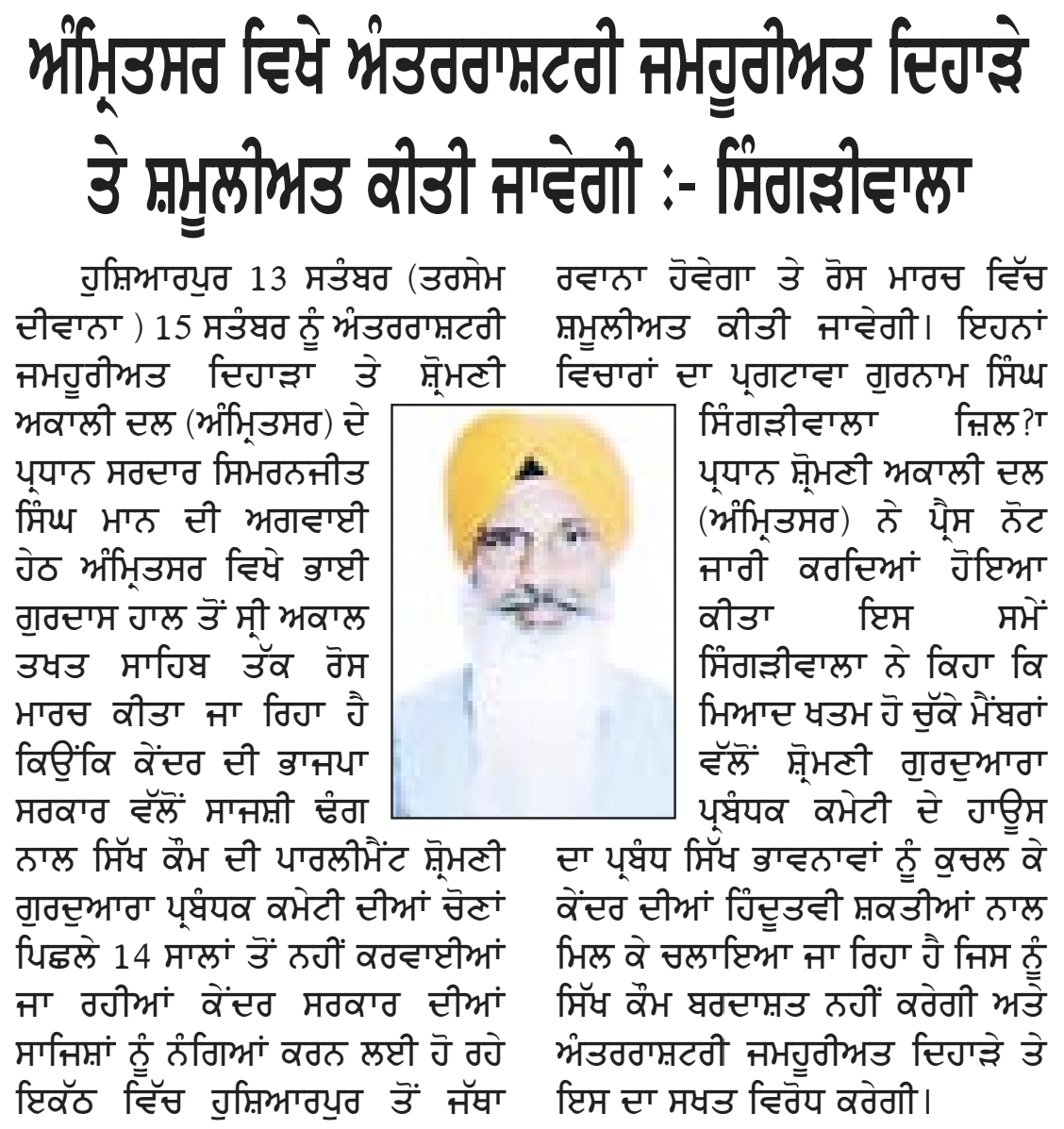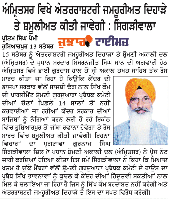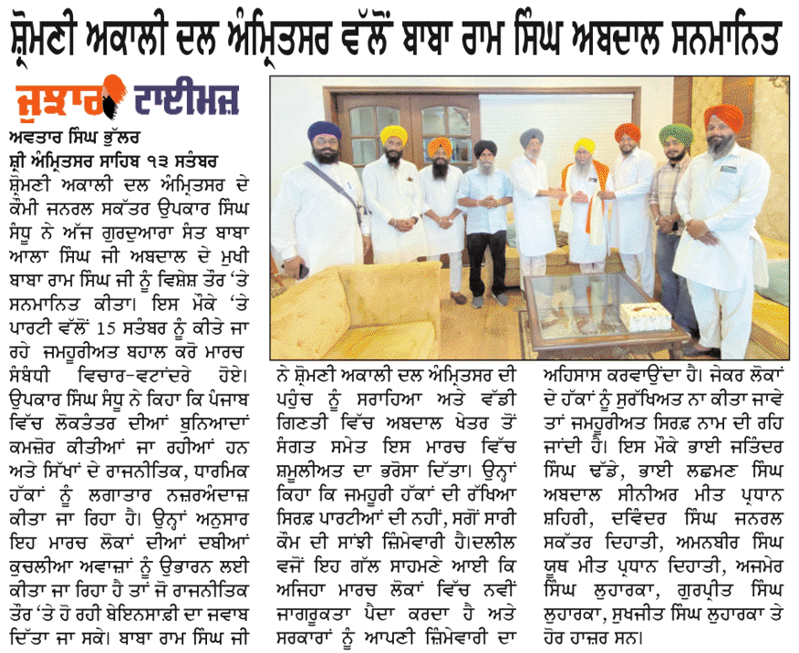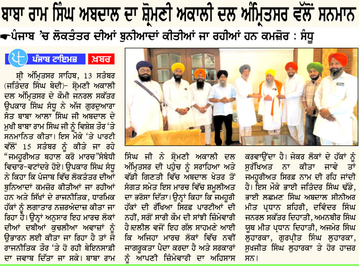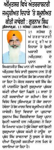 ਪਹਿਰੇਦਾਰ 13-14 September 2025 ਰੋਜ਼ਾਨਾ ਸਪੋਕਸਮੈਨ 14 September 2025 Post navigation ਪਿੰਡ ਜੌਹਲਾਂ ਵਿਖੇ ਸ਼ਹੀਦ ਭਾਈ ਸਰਬਜੀਤ ਸਿੰਘ ਜੌਹਲ ਦੀ ਬਰਸੀਂ ‘ਤੇ ਹੋਇਆ ਗੁਰਮਿਤ ਸਮਾਗਮ ਸ੍ਰੀ ਗੁਰੂ ਤੇਗ ਬਹਾਦਰ ਜੀ ਦੇ 350ਵੇਂ ਸ਼ਹੀਦੀ ਦਿਹਾੜੇ ਮੌਕੇ ਦੀਨਾ ਕਾਂਗੜ ਵਿਖੇ ਹੋਵੇਗਾ ਇਤਿਹਾਸਕ ਇਕੱਠ : ਮਾਨ