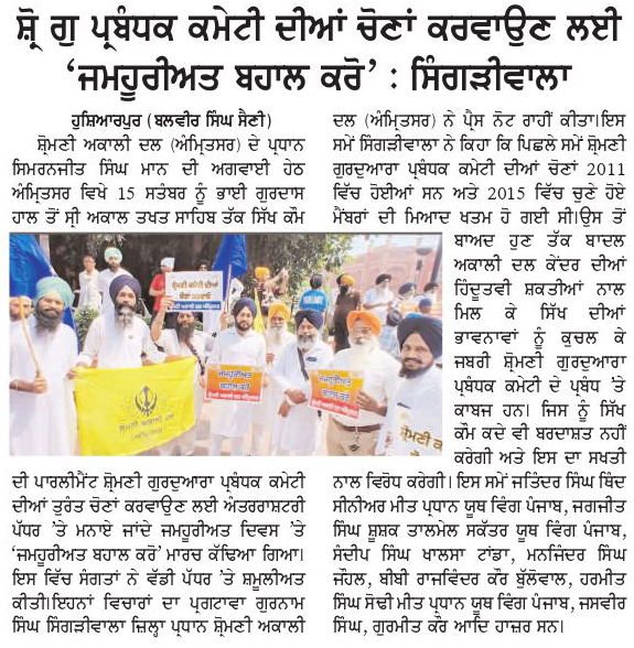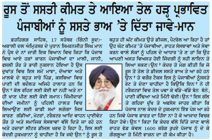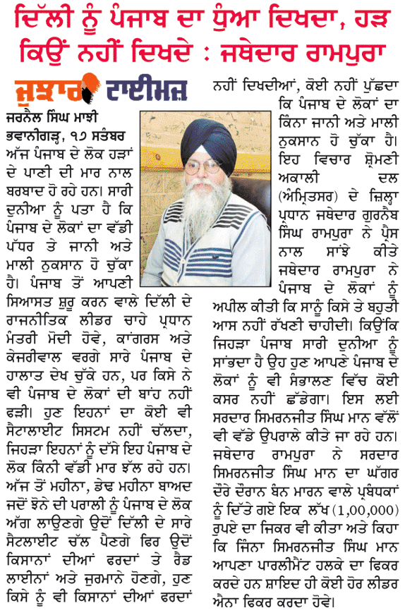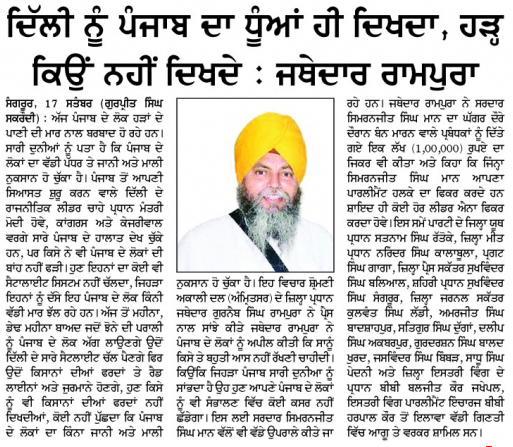 ਪਹਿਰੇਦਾਰ 18 September 2025 ਰੋਜ਼ਾਨਾ ਸਪੋਕਸਮੈਨ 18 September 2025 Post navigation ਮੋਦੀ ਦੀ ਮੁਤੱਸਵੀ ਹਕੂਮਤ ਵੱਲੋ ਸਿੱਖ ਸਰਧਾਲੂਆਂ ਦੀ ਪਾਕਿ ਯਾਤਰਾ ਤੇ ਲਗਾਈ ਰੋਕ ਫਿਰਕੂਪਣੇ ਦਾ ਨਿੰਦਣਯੋਗ ਅਮਲ : ਮਾਨ ਮੋਦੀ ਹਕੂਮਤ ਵੱਲੋ ਸਿੱਖ ਸਰਧਾਲੂਆਂ ਦੀ ਪਾਕਿ ਯਾਤਰਾ ‘ਤੇ ਲਗਾਈ ਰੋਕ ਨਿੰਦਣਯੋਗ ਅਮਲ : ਮਾਨ