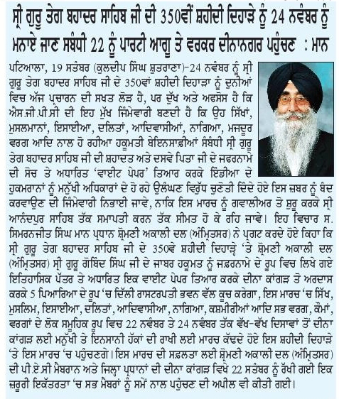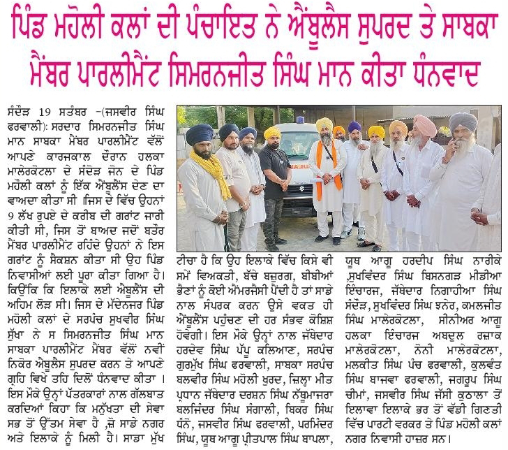 ਪਹਿਰੇਦਾਰ 20 September 2025 ਸੱਚ ਦੀ ਪਟਾਰੀ 20 September 2025 Post navigation ਮੋਦੀ ਹਕੂਮਤ ਵੱਲੋ ਸਿੱਖ ਸਰਧਾਲੂਆਂ ਦੀ ਪਾਕਿ ਯਾਤਰਾ ‘ਤੇ ਲਗਾਈ ਰੋਕ ਨਿੰਦਣਯੋਗ ਅਮਲ : ਮਾਨ ਕੌਮਾਂਤਰੀ ਵਪਾਰ ਸੰਬੰਧੀ ਹੁਕਮਰਾਨਾਂ ਵੱਲੋਂ ਅਪਣਾਈ ਜਾ ਰਹੀ ਦੋਹਰੀ ਨੀਤੀ ਬੇਨਤੀਜਾ : ਮਾਨ