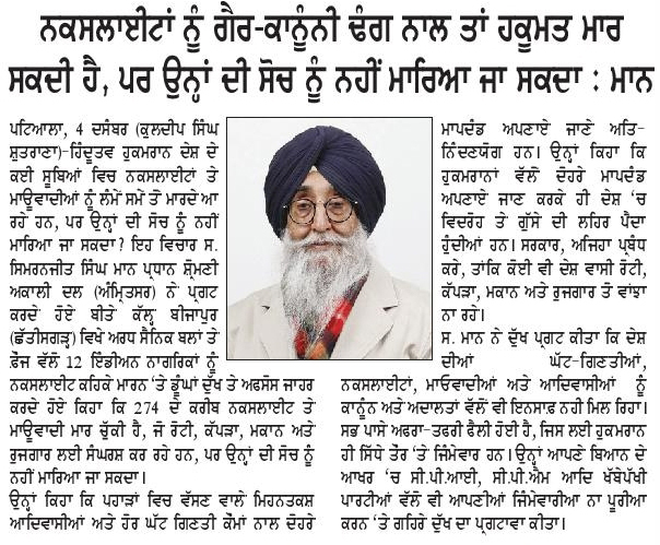 ਪਹਿਰੇਦਾਰ 05 December 2025 Post navigation ਸ੍ਰੀ ਗੁਰੂ ਤੇਗ ਬਹਾਦਰ ਸਾਹਿਬ ਜੀ ਦੇ 350 ਸਾਲਾਂ ਸ਼ਹੀਦੀ ਦਿਹਾੜੇ ਉਤੇ ਦੀਨਾਂ ਕਾਂਗੜ ਵਿਖੇ ਦਿੱਤੇ ਵੱਡੇ ਹੁੰਗਾਰੇ ਨੇ ਸਾਨੂੰ ਹਰ ਤਰ੍ਹਾਂ ਦੀਆਂ ਚੋਣਾਂ ਲੜਨ ਤੇ ਫ਼ਤਹਿ ਕਰਨ ਦਾ ਸੰਦੇਸ਼ ਦਿੱਤਾ ਹੈ : ਮਾਨ ਜਦੋਂ ਚੀਨ ਅਤੇ ਰੂਸ ਦਾ ਵੱਡਾ ਸਮਝੋਤਾ ਹੈ, ਫਿਰ ਇੰਡੀਆਂ ਰੂਸ ਰਾਹੀ ਚੀਨ ਤੋ ਆਪਣੀ 39 ਹਜਾਰ ਸਕੇਅਰ ਵਰਗ ਕਿਲੋਮੀਟਰ ਖੇਤਰਫਲ ਵਾਪਸ ਕਿਉਂ ਨਹੀਂ ਲੈਦਾ ? : ਮਾਨ