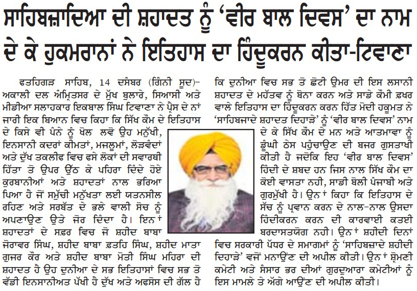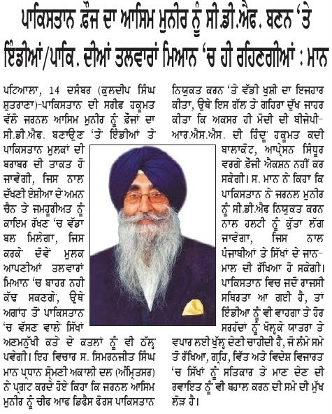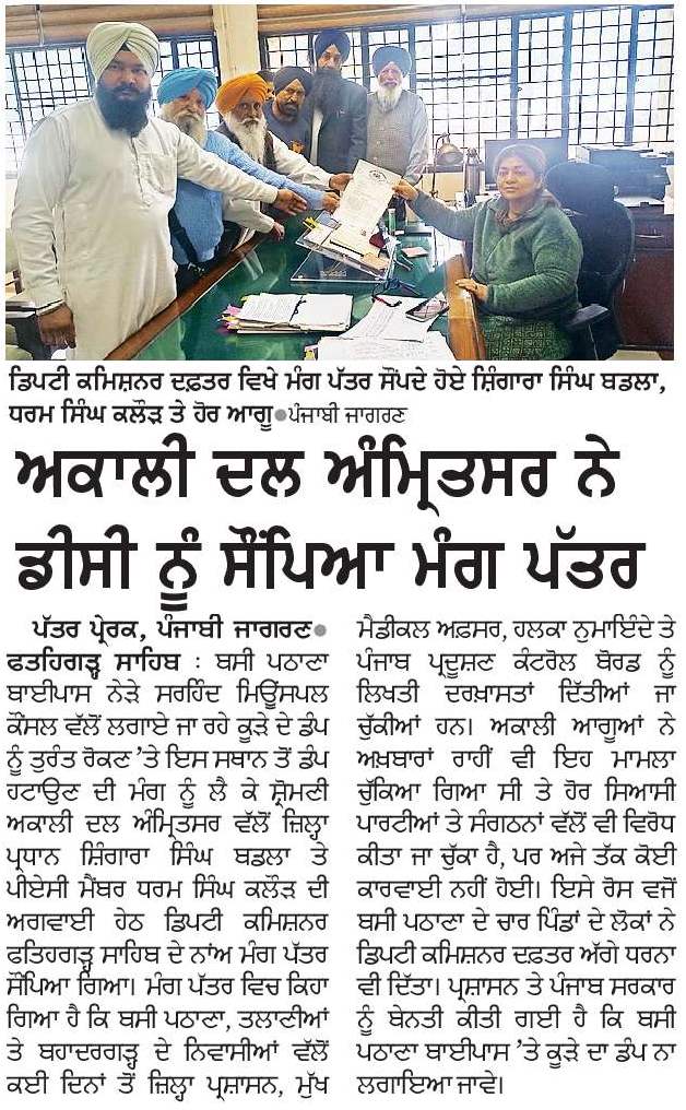 ਪਹਿਰੇਦਾਰ 15 December 2025 ਰੋਜ਼ਾਨਾ ਸਪੋਕਸਮੈਨ 15 December 2025 Post navigation ਮਿਊਸੀਪਲ ਕਂੌਂਸਲ ਫ਼ਤਹਿਗੜ੍ਹ ਸਾਹਿਬ ਵੱਲੋ ਬਸੀ ਪਠਾਣਾ ਬਾਈਪਾਸ ਉਤੇ ਲਗਾਏ ਜਾ ਰਹੇ ਕੂੜੇ ਦੇ ਡੰਪ ਨੂੰ ਤੁਰੰਤ ਖਤਮ ਕੀਤਾ ਜਾਵੇ : ਟਿਵਾਣਾ ਸ਼੍ਰੋਮਣੀ ਅਕਾਲੀ ਦਲ (ਅੰਮ੍ਰਿਤਸਰ) ਵੱਲੋ ਖ਼ਾਲਸਾਈ ਮਾਰਚ ਕੱਢਿਆ ਗਿਆ