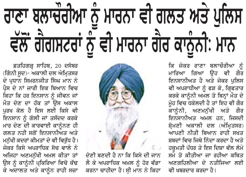 ਪਹਿਰੇਦਾਰ 21 December 2025 Post navigation ਖ਼ਾਲਸਾ ਰਾਜ ਤੋਂ ਬਿਨ੍ਹਾਂ ਸਿੱਖਾਂ ਦੇ ਹੱਕ ਮਿਲਣੇ ਅਸੰਭਵ : ਸਿਮਰਨਜੀਤ ਸਿੰਘ ਮਾਨ ਸ਼੍ਰੋਮਣੀ ਅਕਾਲੀ ਦਲ (ਅੰਮ੍ਰਿਤਸਰ) ਵੱਲੋ ਸ੍ਰੀ ਚਮਕੌਰ ਸਾਹਿਬ ਦੇ ਸ਼ਹੀਦੀ ਸਮਾਗਮ ਨੂੰ ਸਮਰਪਿਤ ਕਾਨਫਰੰਸ