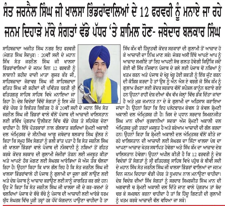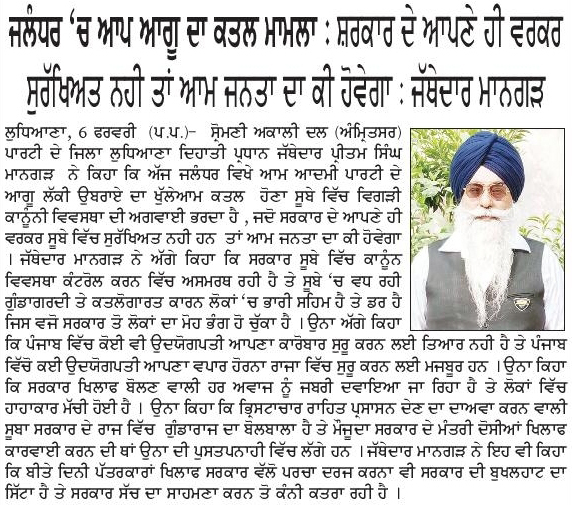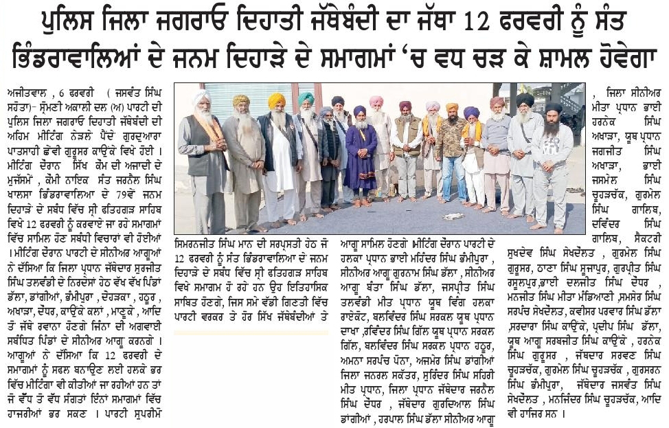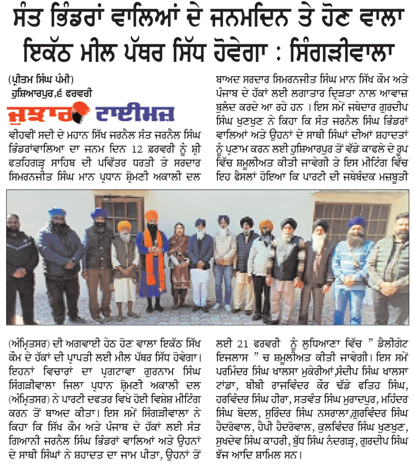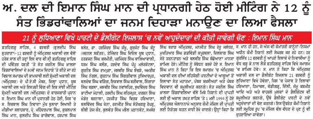 ਪਹਿਰੇਦਾਰ 07 February 2026 ਸੱਚ ਦੀ ਪਟਾਰੀ 07 February 2026 Post navigation ਫ਼ਤਹਿਗੜ੍ਹ ਸਾਹਿਬ ਵਿਖੇ 12 ਫ਼ਰਵਰੀ ਨੂੰ ਭਰਵੀ ਸਮੂਲੀਅਤ ਲਈ ਸ਼੍ਰੋਮਣੀ ਅਕਾਲੀ ਦਲ (ਅੰਮ੍ਰਿਤਸਰ) ਵੱਲੋਂ ਅਹਿਮ ਇਕੱਤਰਤਾ ਕਾਂਗਰਸ ਨੇ ਬੀਬੀ ਸਿੱਧੂ ਨੂੰ ਕੱਢਣ ਦੇ ਅਮਲ ਕਰਕੇ ਰਾਹੁਲ ਗਾਂਧੀ ਨੂੰ ‘ਪੱਪੂ’ ਕਹਿਣ ਦੇ ਅਮਲ ਨੂੰ ਪੱਕਾ ਕਰਨ ਦੀ ਗੁਸਤਾਖੀ ਕਰ ਲਈ : ਮਾਨ