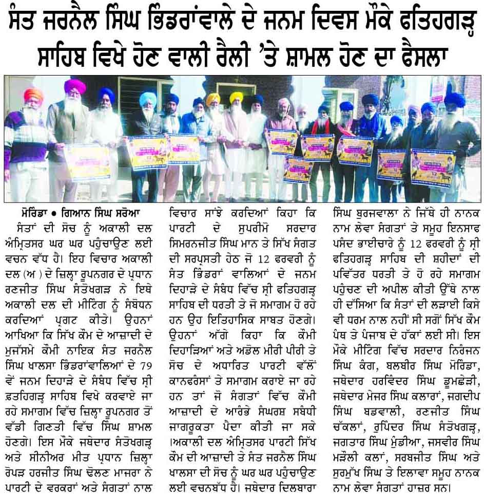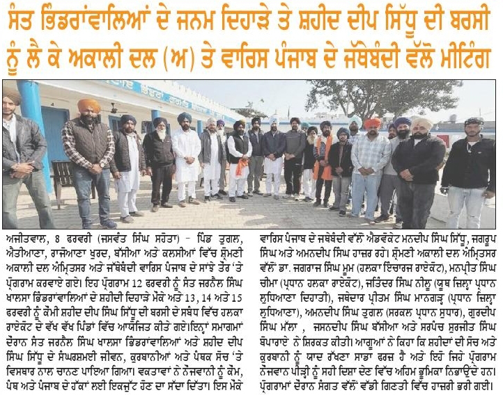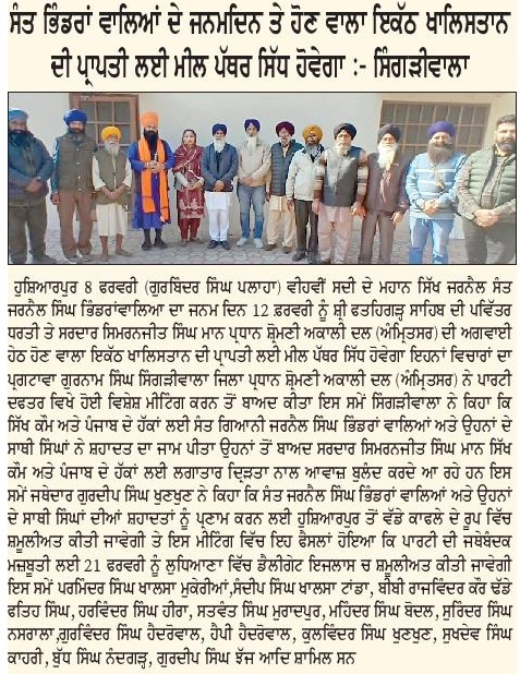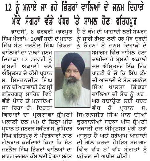 ਪਹਿਰੇਦਾਰ 09 February 2026 ਰੋਜ਼ਾਨਾ ਸਪੋਕਸਮੈਨ 09 February 2026 Post navigation ਕਾਂਗਰਸ ਨੇ ਬੀਬੀ ਸਿੱਧੂ ਨੂੰ ਕੱਢਣ ਦੇ ਅਮਲ ਕਰਕੇ ਰਾਹੁਲ ਗਾਂਧੀ ਨੂੰ ‘ਪੱਪੂ’ ਕਹਿਣ ਦੇ ਅਮਲ ਨੂੰ ਪੱਕਾ ਕਰਨ ਦੀ ਗੁਸਤਾਖੀ ਕਰ ਲਈ : ਮਾਨ ਸੰਤ ਜਰਨੈਲ ਸਿੰਘ ਭਿੰਡਰਾਂਵਾਲਿਆ ਦਾ ਜਨਮ ਦਿਹਾੜਾ 12 ਫਰਵਰੀ ਨੂੰ ਫਤਹਿਗੜ੍ਹ ਸਾਹਿਬ ਵਿਖੇ ਸ਼ਰਧਾ ਅਤੇ ਉਤਸਾਹ ਨਾਲ ਮਨਾਇਆ ਜਾਵੇਗਾ