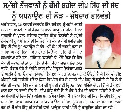 ਰੋਜ਼ਾਨਾ ਸਪੋਕਸਮੈਨ 17 February 2026