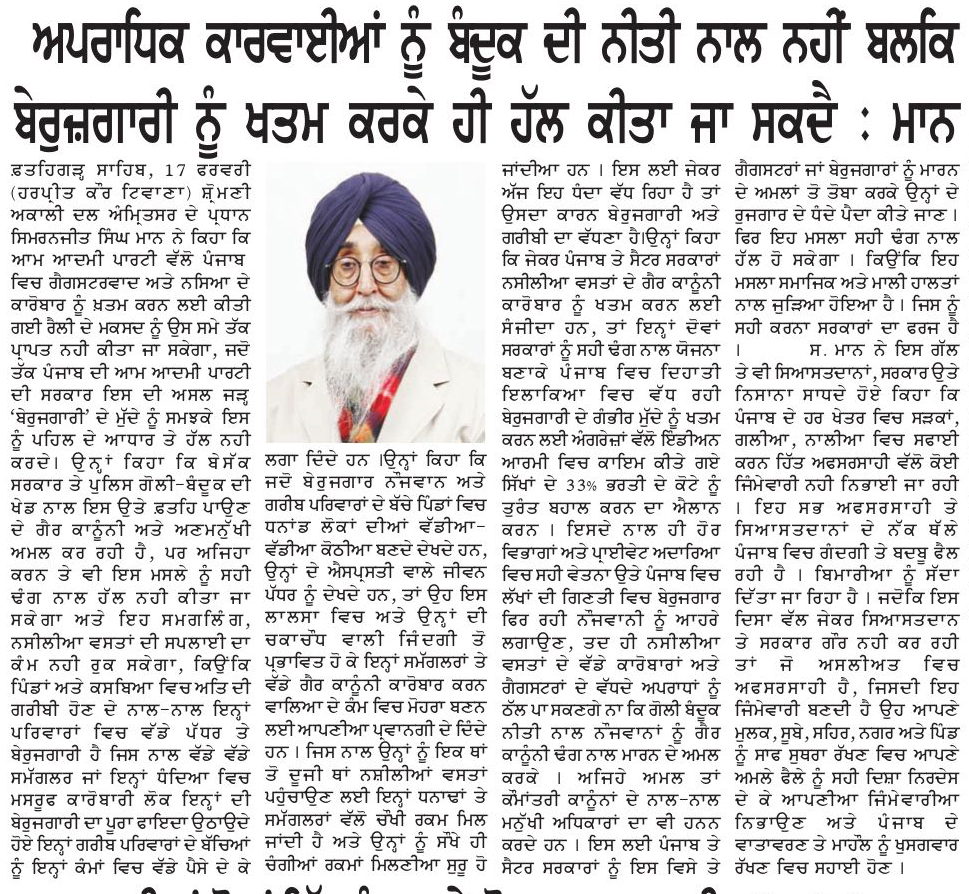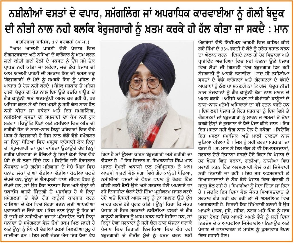 ਪਹਿਰੇਦਾਰ 18 February 2026 ਸੱਚ ਦੀ ਪਟਾਰੀ 18 February 2026 ਰੋਜ਼ਾਨਾ ਸਪੋਕਸਮੈਨ 18 February 2026 Post navigation ਨਿਖਿਲ ਗੁਪਤਾ ਮੋਹਰਾ, ਅਸਲ ਸਾਜਿ਼ਸ ਰਾਅ ਦੀ : ਮਾਨ, ਕੰਵਰਪਾਲ ਸਿੰਘ