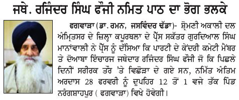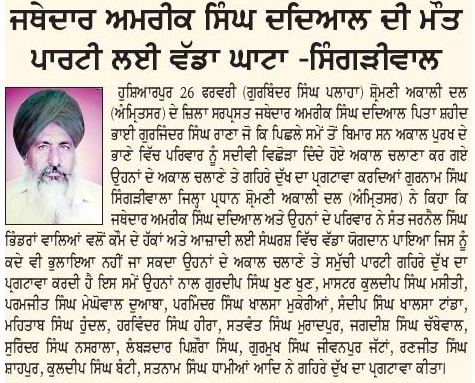 ਪਹਿਰੇਦਾਰ 27 February 2026 ਰੋਜ਼ਾਨਾ ਸਪੋਕਸਮੈਨ 27 February 2026 Post navigation ਖਡੂਰ ਸਾਹਿਬ ਵਿਖੇ ਸ਼੍ਰੋਮਣੀ ਅਕਾਲੀ ਦਲ (ਅੰਮ੍ਰਿਤਸਰ) ਵੱਲੋ ਪੰਜਾਬੀ ਮਾਂ ਬੋਲੀ ਦਿਹਾੜਾ ਮਨਾਇਆ ਹੈੱਡ ਗ੍ਰੰਥੀ ਸ੍ਰੀ ਦਰਬਾਰ ਸਾਹਿਬ ਦੇ ਸਤਿਕਾਰਿਤ ਅਹੁਦੇ ਦਾ ਕਿਸੇ ਤਰ੍ਹਾਂ ਵੀ ਅਪਮਾਨ ਨਹੀਂ ਹੋਣਾ ਚਾਹੀਦਾ : ਮਾਨ