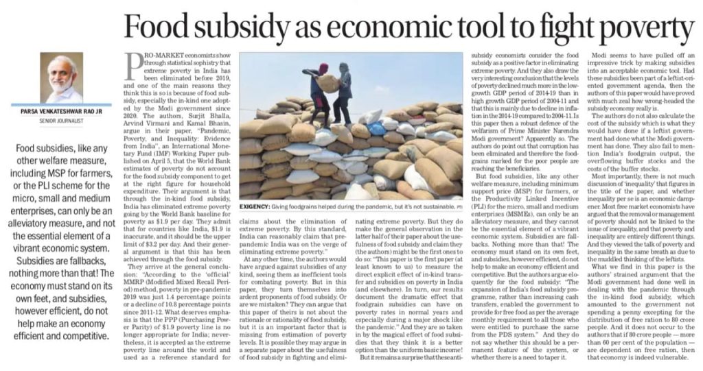 The Hindu Indian state needs jobs not food subsidies to boost the economy and keep its borders safe. – Simranjit Singh Mānn