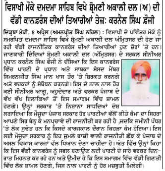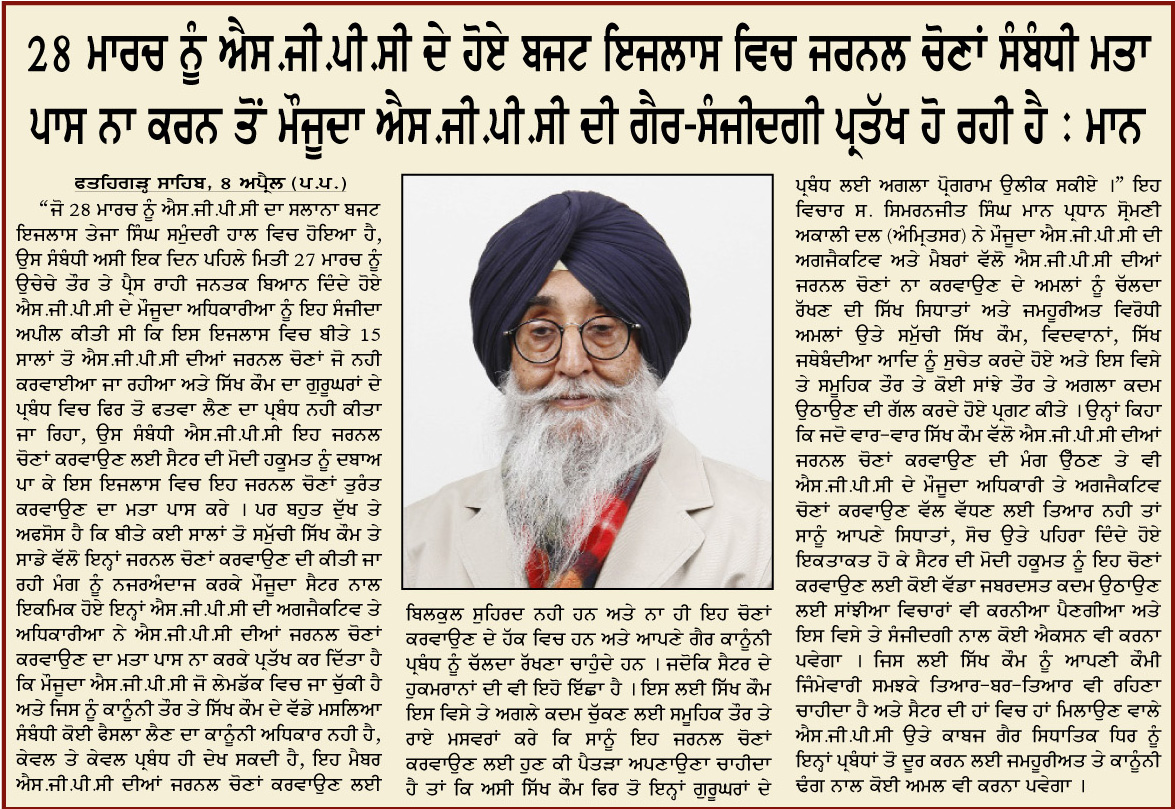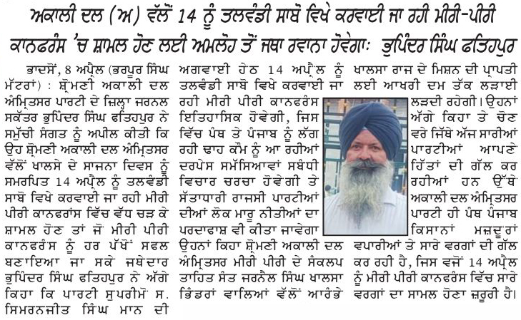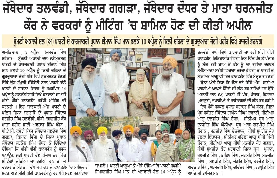 ਪਹਿਰੇਦਾਰ 09 April 2026 ਸੱਚ ਦੀ ਪਟਾਰੀ 09 April 2026 ਰੋਜ਼ਾਨਾ ਸਪੋਕਸਮੈਨ 09 April 2026 Post navigation ਮੋਦੀ ਹਕੂਮਤ ਅਤੇ ਖੂਫੀਆ ਏਜੰਸੀਆ ਵੱਲੋ ਸਿੱਖਾਂ ਦੇ ਸਾਜਸੀ ਢੰਗਾਂ ਨਾਲ ਕੀਤੇ ਜਾ ਰਹੇ ਕਤਲਾਂ ਸੰਬੰਧੀ, ਵਿਰੋਧੀ ਧਿਰ ਦੇ ਆਗੂ ਚੁੱਪ ਕਿਉਂ ? : ਮਾਨ ਇਰਾਨ ਦੂਤਵਾਸ ਦੇ ਡਿਪਟੀ ਸਫੀਰ ਜਨਾਬ ਮੁਹੰਮਦ ਹੂਸੈਨ ਦਾ ਸ੍ਰੀ ਦਰਬਾਰ ਸਾਹਿਬ ਆਉਣ ਤੇ ਭਰਪੂਰ ਸਵਾਗਤ : ਮਾਨ