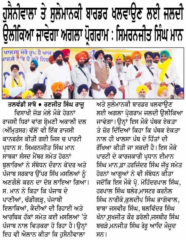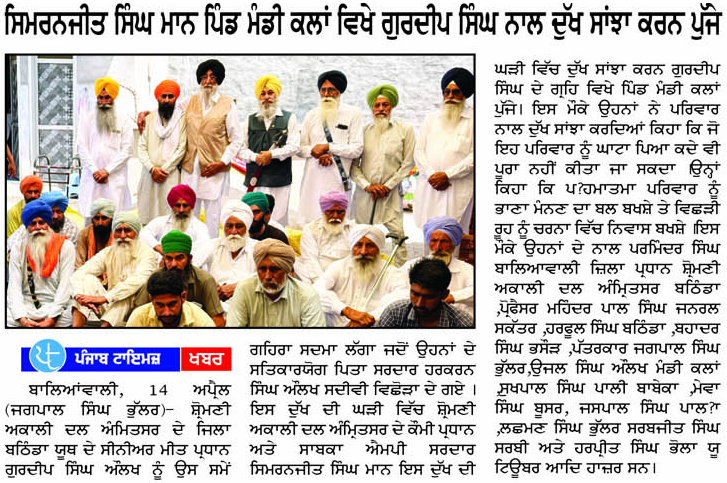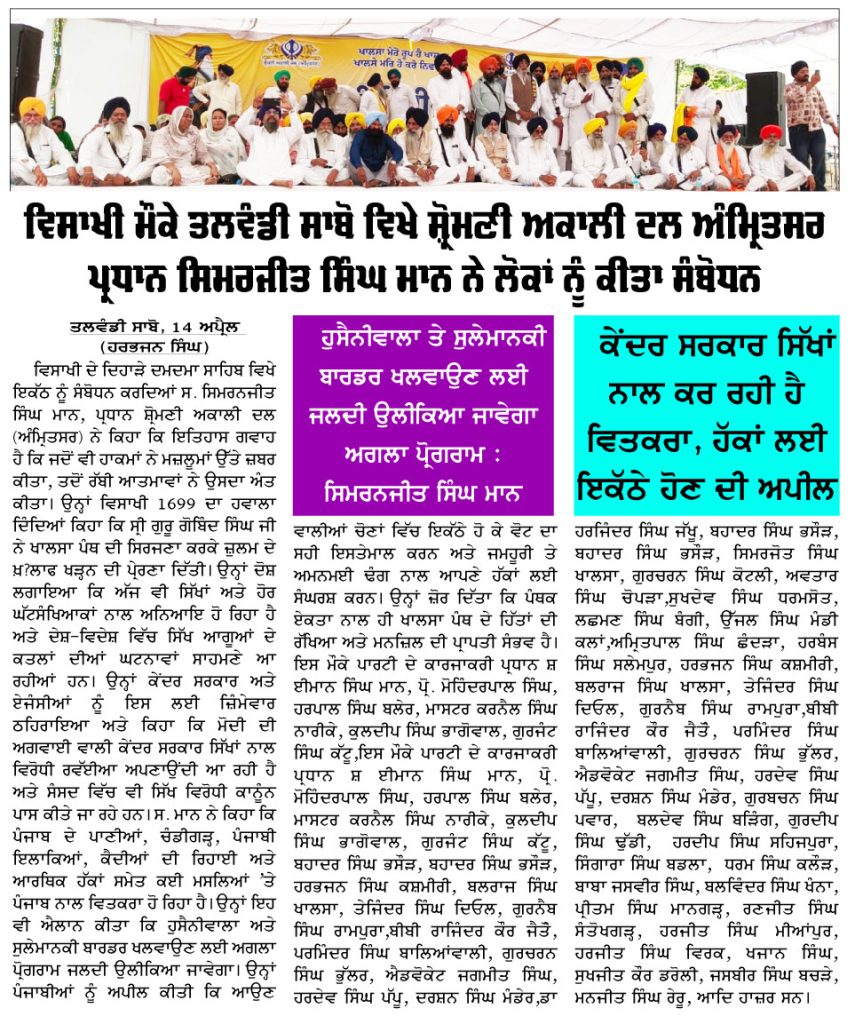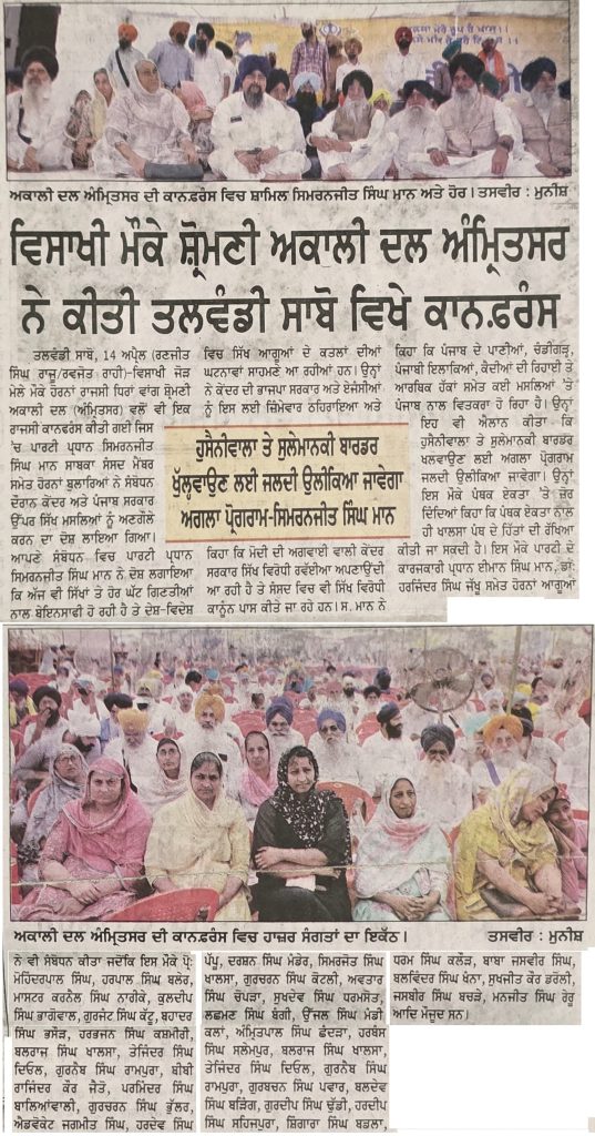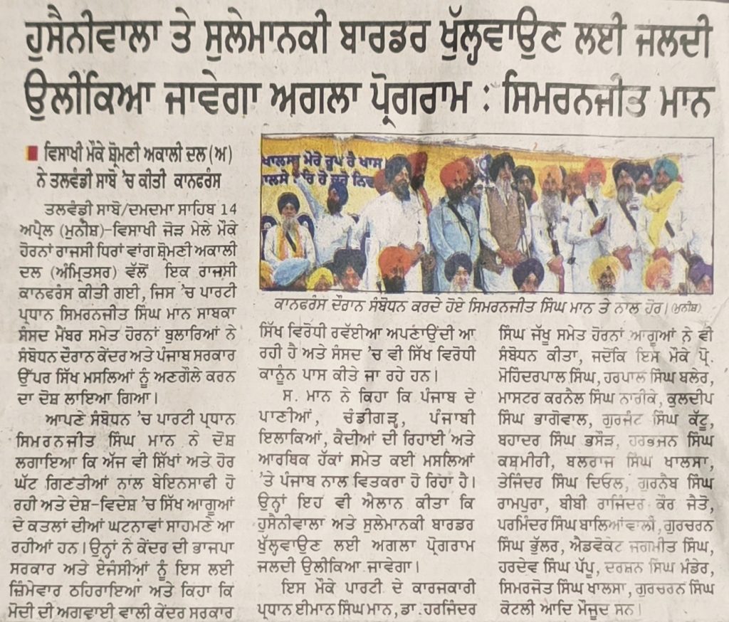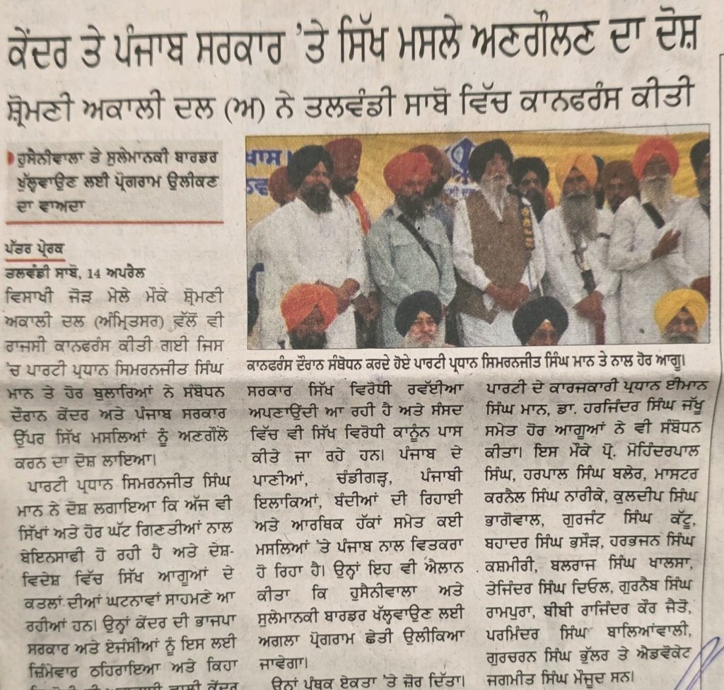 ਪਹਿਰੇਦਾਰ 15 April 2026 ਸੱਚ ਦੀ ਪਟਾਰੀ 15 April 2026 ਰੋਜ਼ਾਨਾ ਸਪੋਕਸਮੈਨ 15 April 2026 Post navigation ਪੰਥਕ ਸੰਮੇਲਨ ‘ਚ ਸ਼੍ਰੋਮਣੀ ਅਕਾਲੀ ਦਲ (ਅੰਮ੍ਰਿਤਸਰ) ਤੇ ਪੰਥਕ ਲੀਡਰਸਿ਼ਪ ਨੇ ਵੱਖ-ਵੱਖ ਮਤੇ ਪਾਸ ਕੀਤੇ