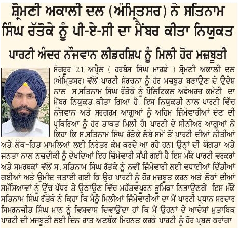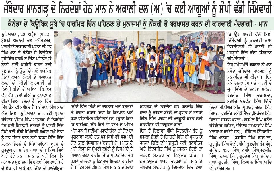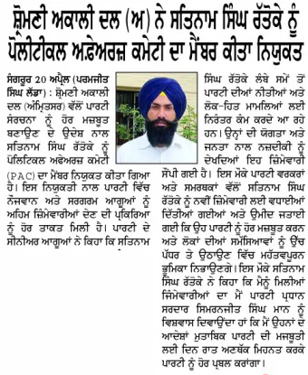 ਰੋਜ਼ਾਨਾ ਸਪੋਕਸਮੈਨ 21 April 2026 ਪਹਿਰੇਦਾਰ 21 April 2026 Post navigation ਬੀਬੀ ਅੰਮ੍ਰਿਤਪਾਲ ਕੌਰ ਵੱਲੋ ਕਿਸਾਨੀ ਖੁਦਕਸੀਆ ਅਤੇ ਵਿਧਵਾਵਾ ਦੇ ਜੀਵਨ ‘ਤੇ ਪੀ.ਐਚ.ਡੀ. ਕਰਨਾ ਪ੍ਰਸੰਸਾਯੋਗ ਅਤੇ ਫਖ਼ਰ ਵਾਲੀ ਗੱਲ : ਮਾਨ