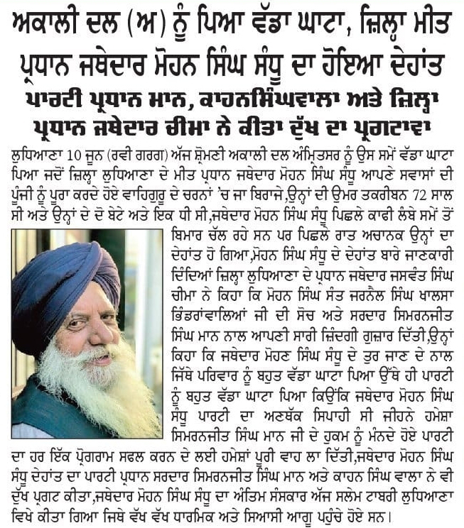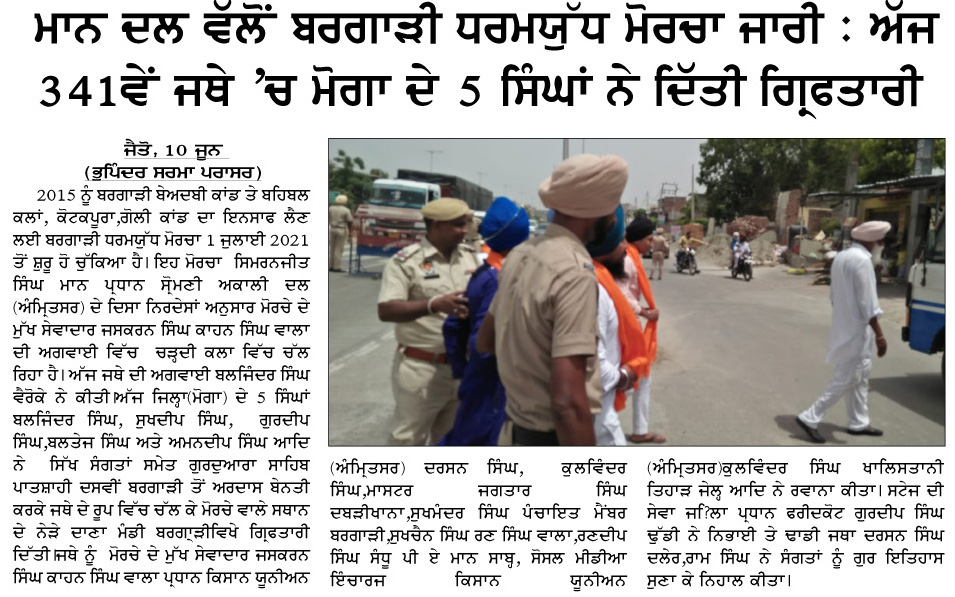 ਰੋਜ਼ਾਨਾ ਸਪੋਕਸਮੈਨ 11 June 2022