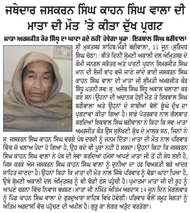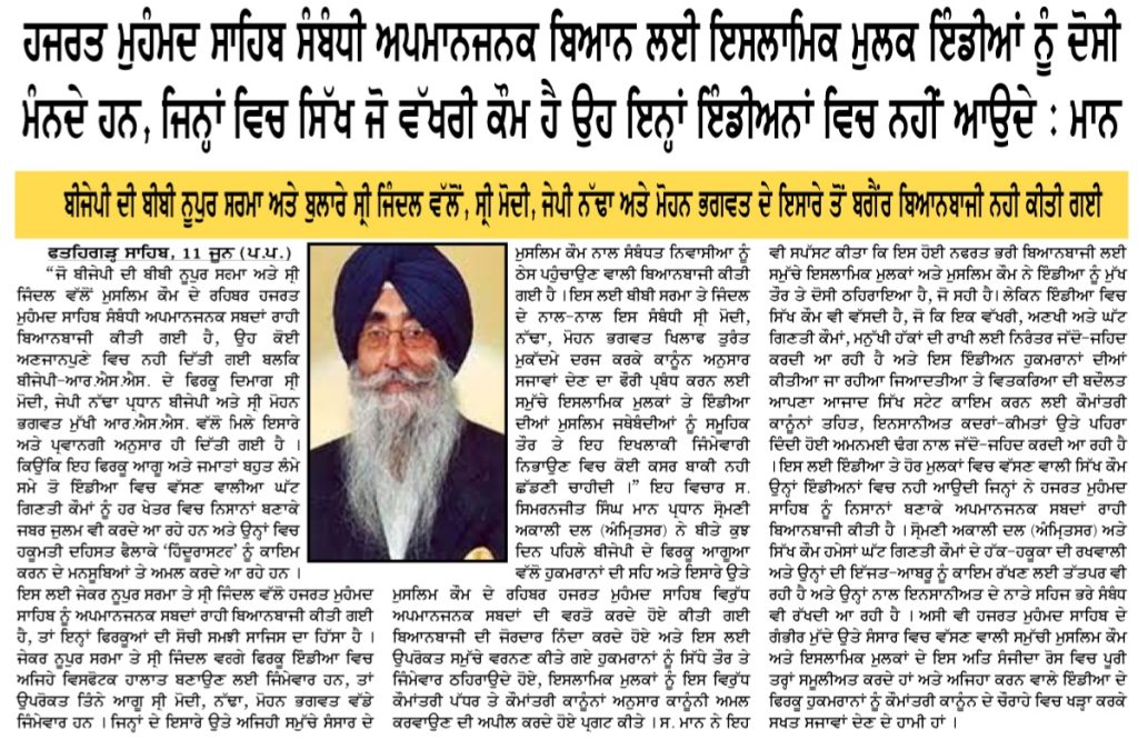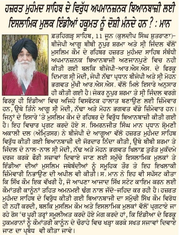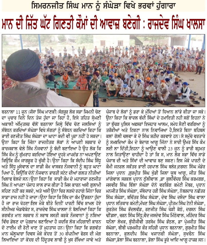 ਰੋਜ਼ਾਨਾ ਸਪੋਕਸਮੈਨ 12 June 2022