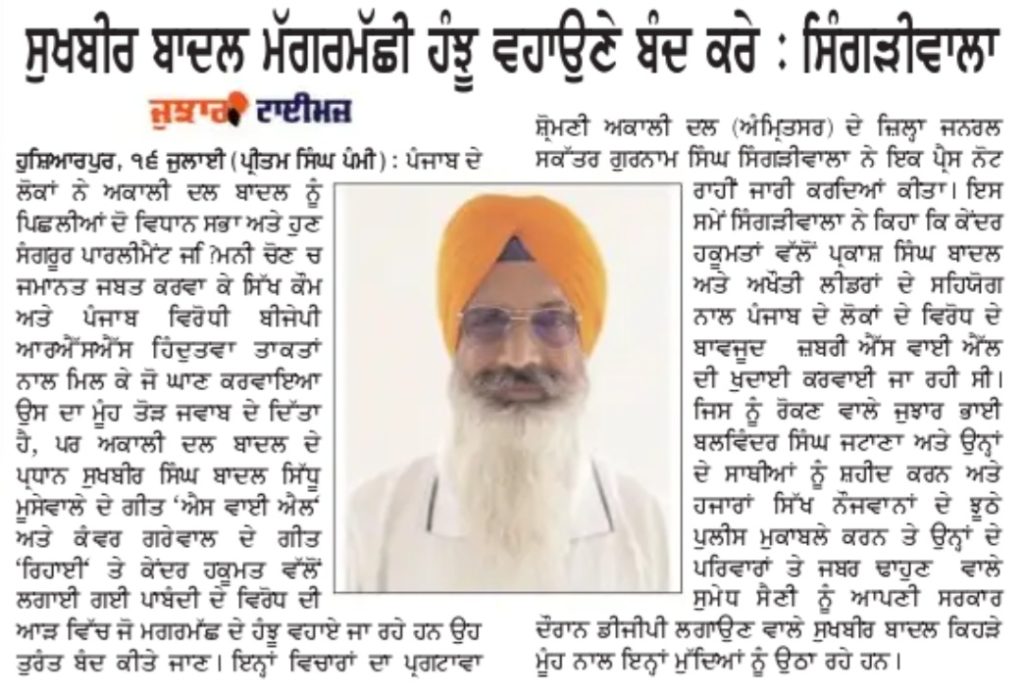ਪੰਜਾਬ ਟਾਈਮਜ਼ 17 July 2022