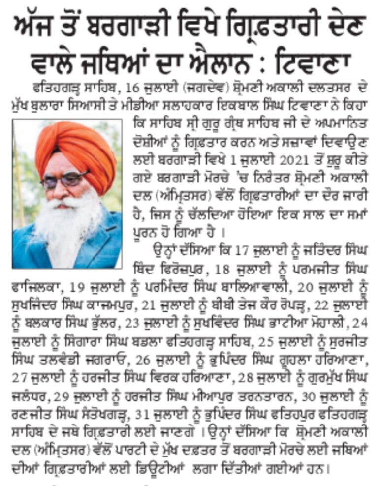 ਪਹਿਰੇਦਾਰ 17 July 2022