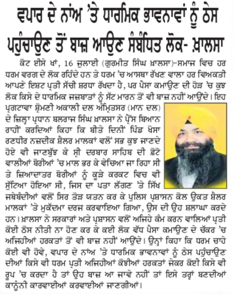 ਰੋਜ਼ਾਨਾ ਸਪੋਕਸਮੈਨ 17 July 2022