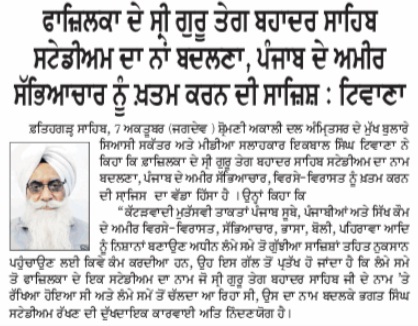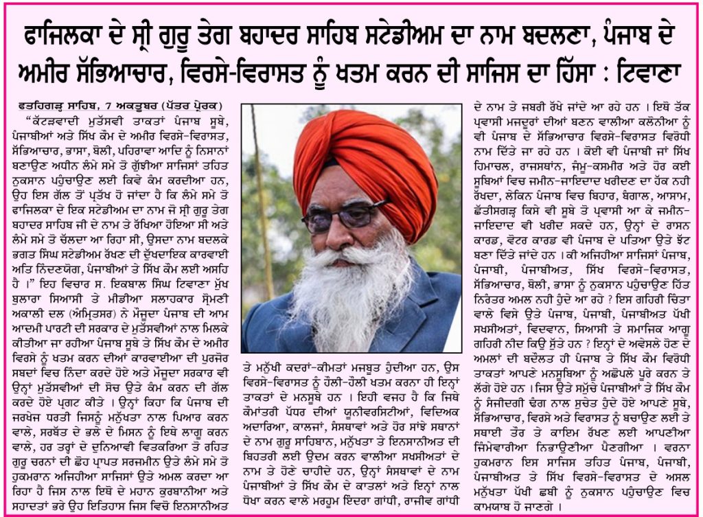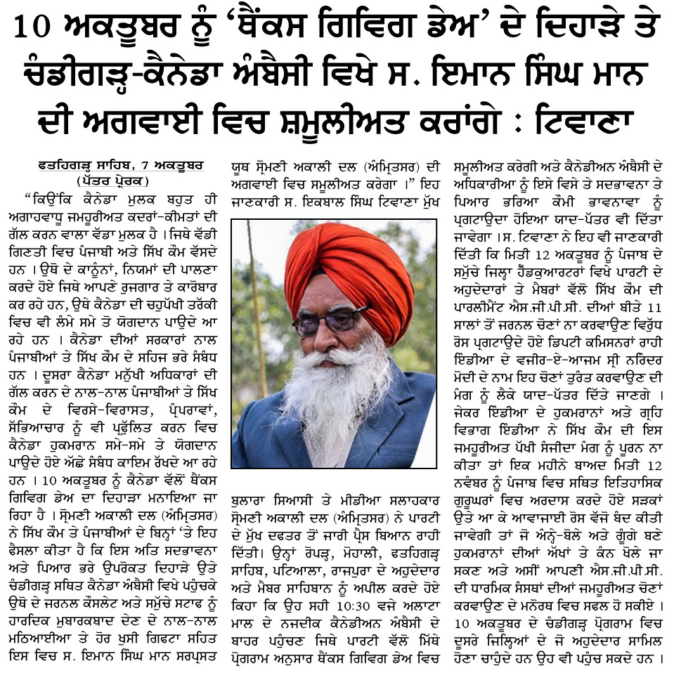ਪੰਜਾਬੀ ਟ੍ਰਿਬਿਊਨ 08 October 2022