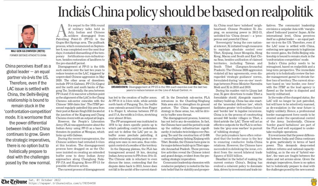 Shriomani Akali Dal (Amritsar) states that this is one of the best articles published in the Tribune by a General. It is incisive and gives us all the vulnerable loopholes where Communist China can once again make an ingress into Ladakh.